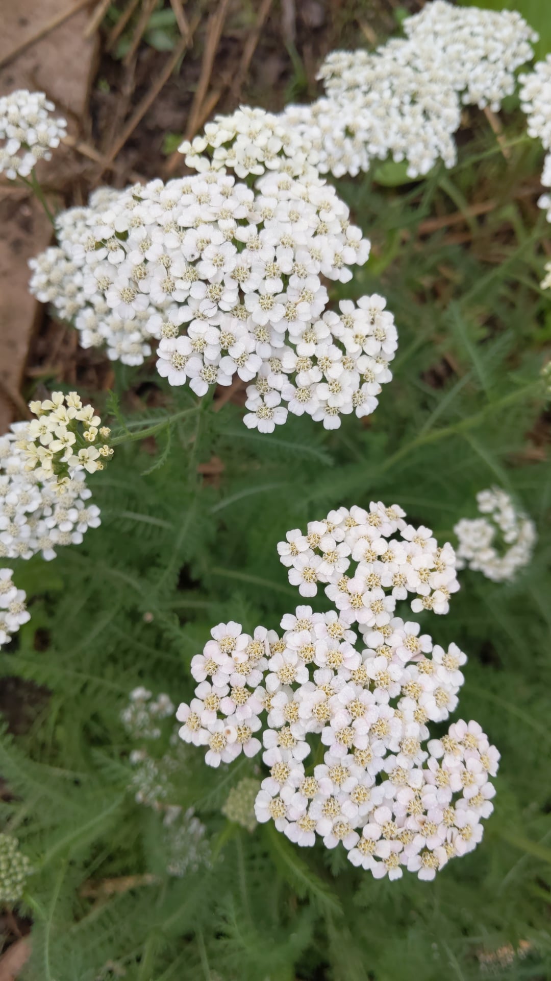 One of the common yarrow I planted this spring is really popping off and just wanted to share her beauty this AM. Last photo includes some baby blackeye Susan, coneflower, and maybe aster (we'll see!). I am just so enchanted with the yarrow š„°