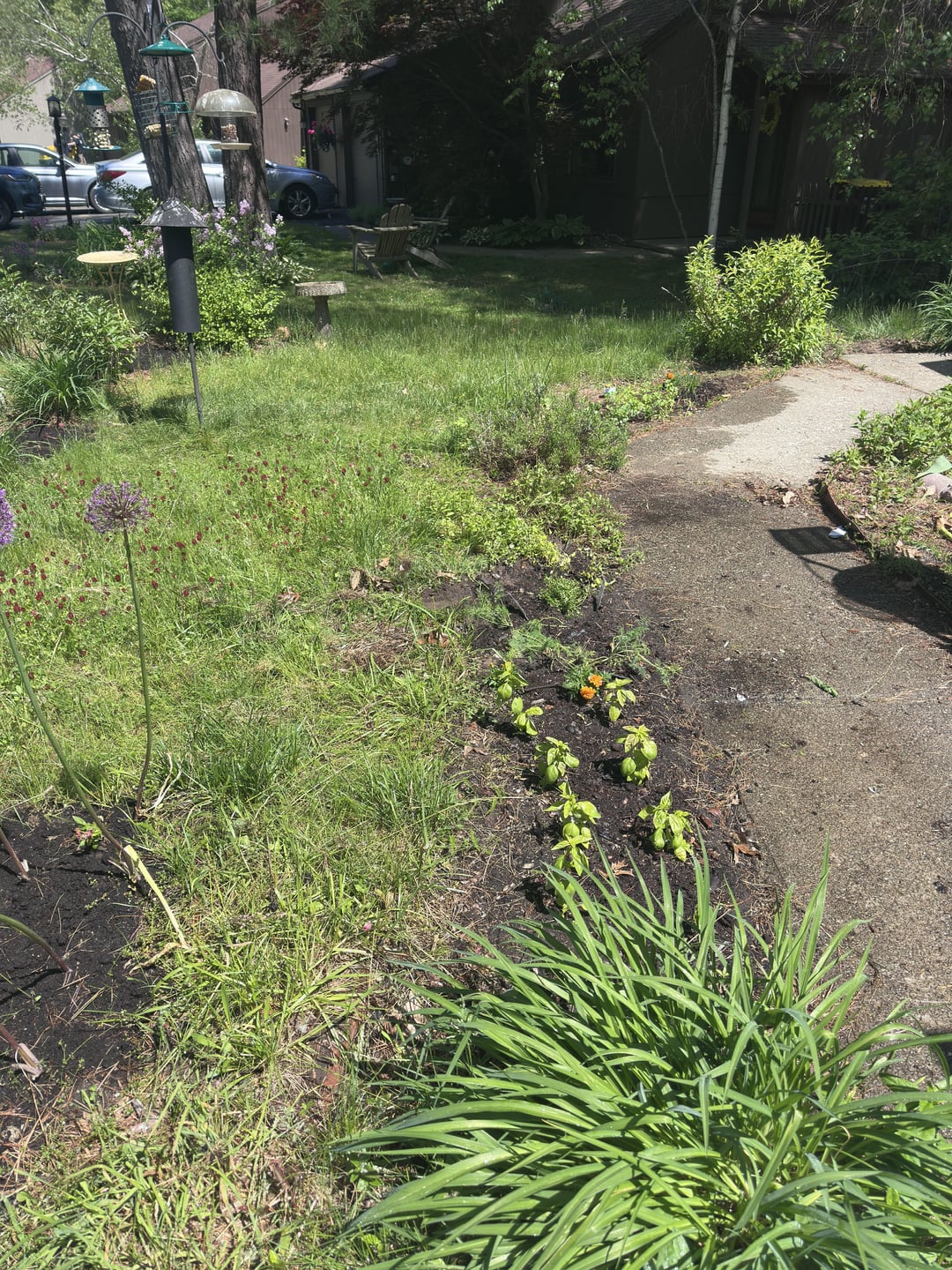 We bought this house the front lawn was all there was and didn’t even look good. During lockdown, I started tearing up sod and putting in flower beds. Every year I’d try to enlarge them a bit.