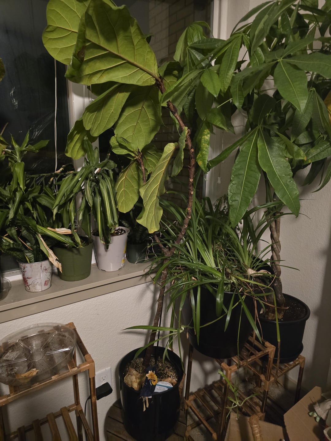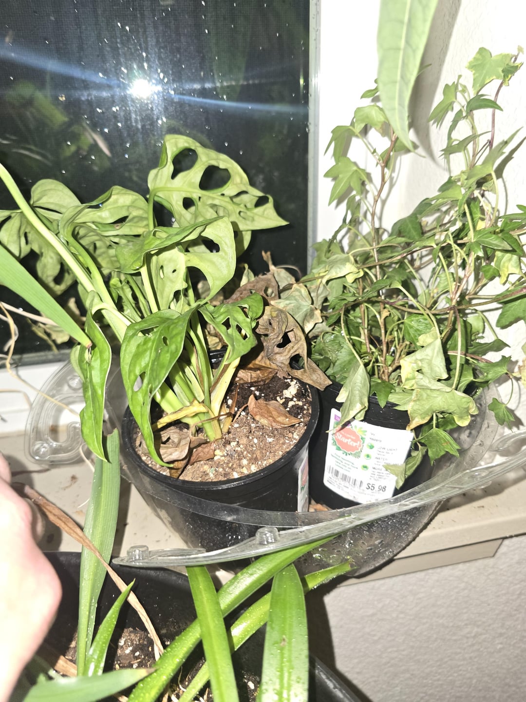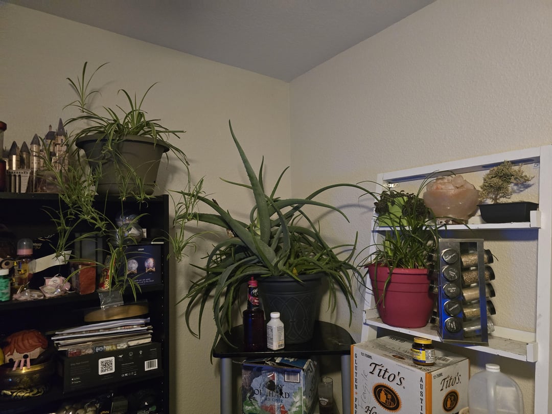 I'm not allowed to touch her plants because of course I will over/under water them. But she hasn't touched them in a while. We also have this purple light thing with a timer but it's been off for a while. I know it's a lot but if there's anything you notice please let me know.