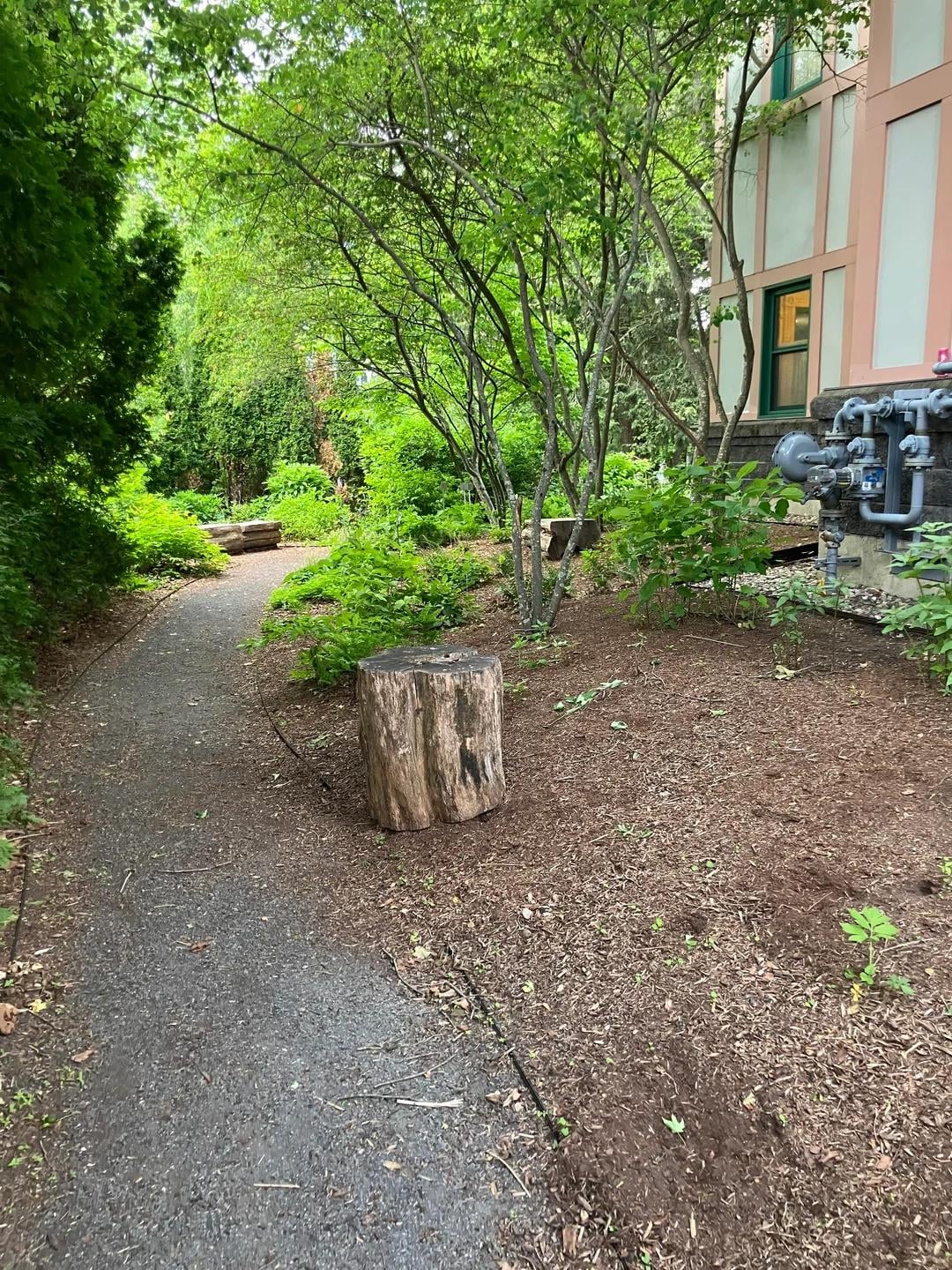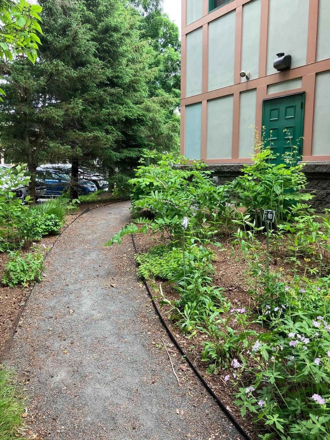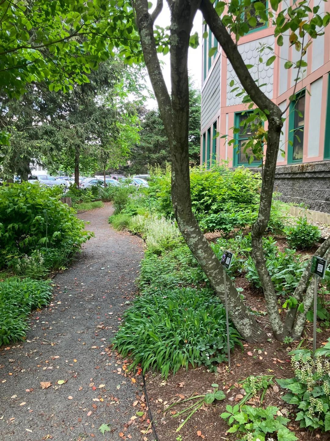 It has been deeply gratifying to see how people use it, from kids running through and playing, all people using the sun and shade depending on the time of year. I see refugees from the paved world beyond our campus come and eat their lunch or talk with friends. This is truly my pinnacle project. The concept was always for it to be both a tiny park and a little nature reserve open to anyone without regard to their mobility.