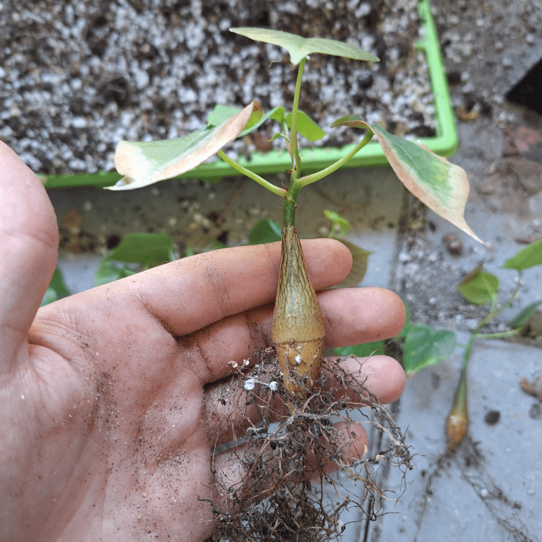 Pseudobombax ellipticum seedlings, 3 months old but needed a repot