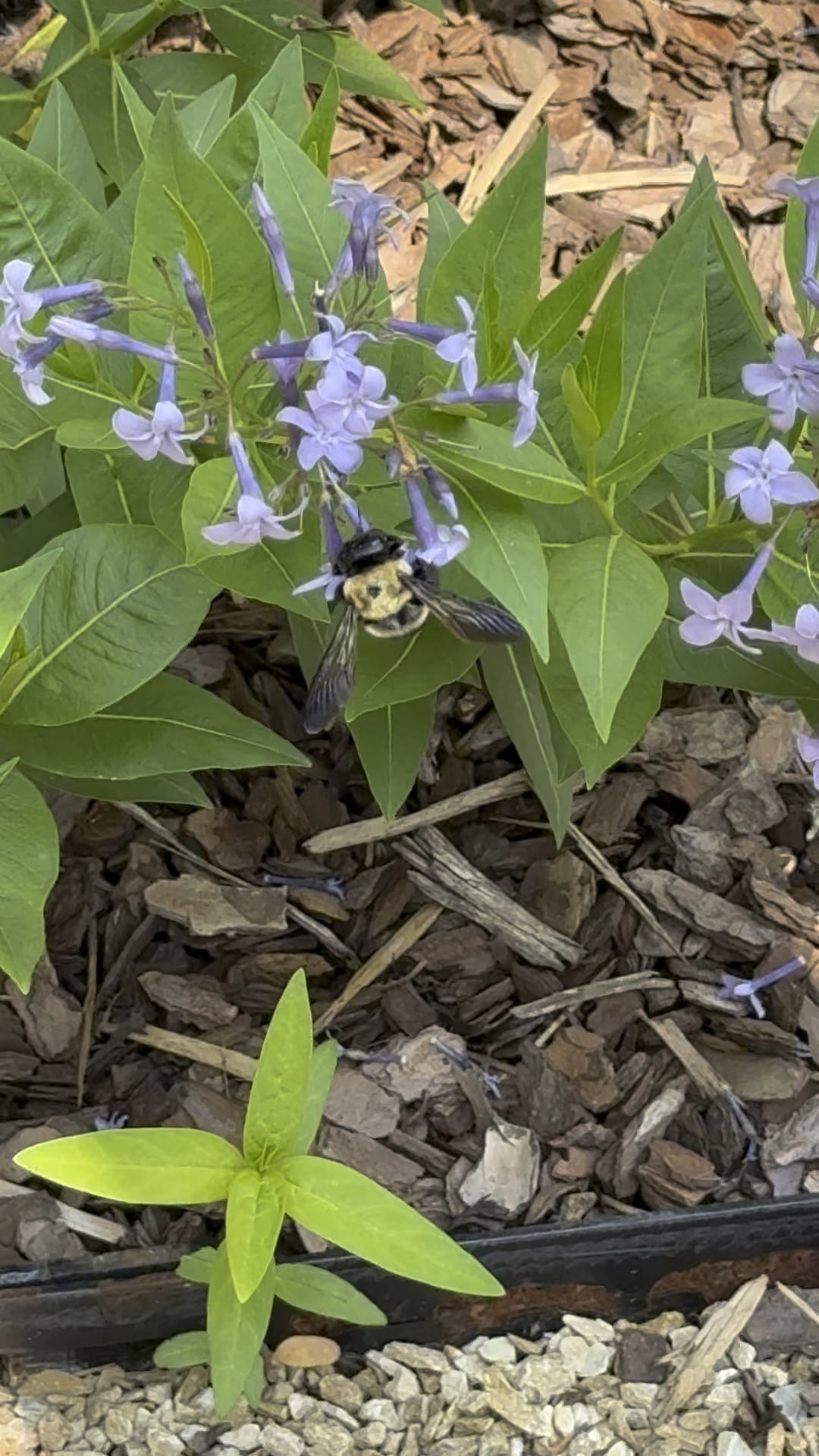 I have seen many carpenter bees and various wasps, but have not a single bumble bee yet. I blame the monoculture yards and the insect spraying regimens. A neighbor a half mile away has honey bees, but I haven’t seen them either.