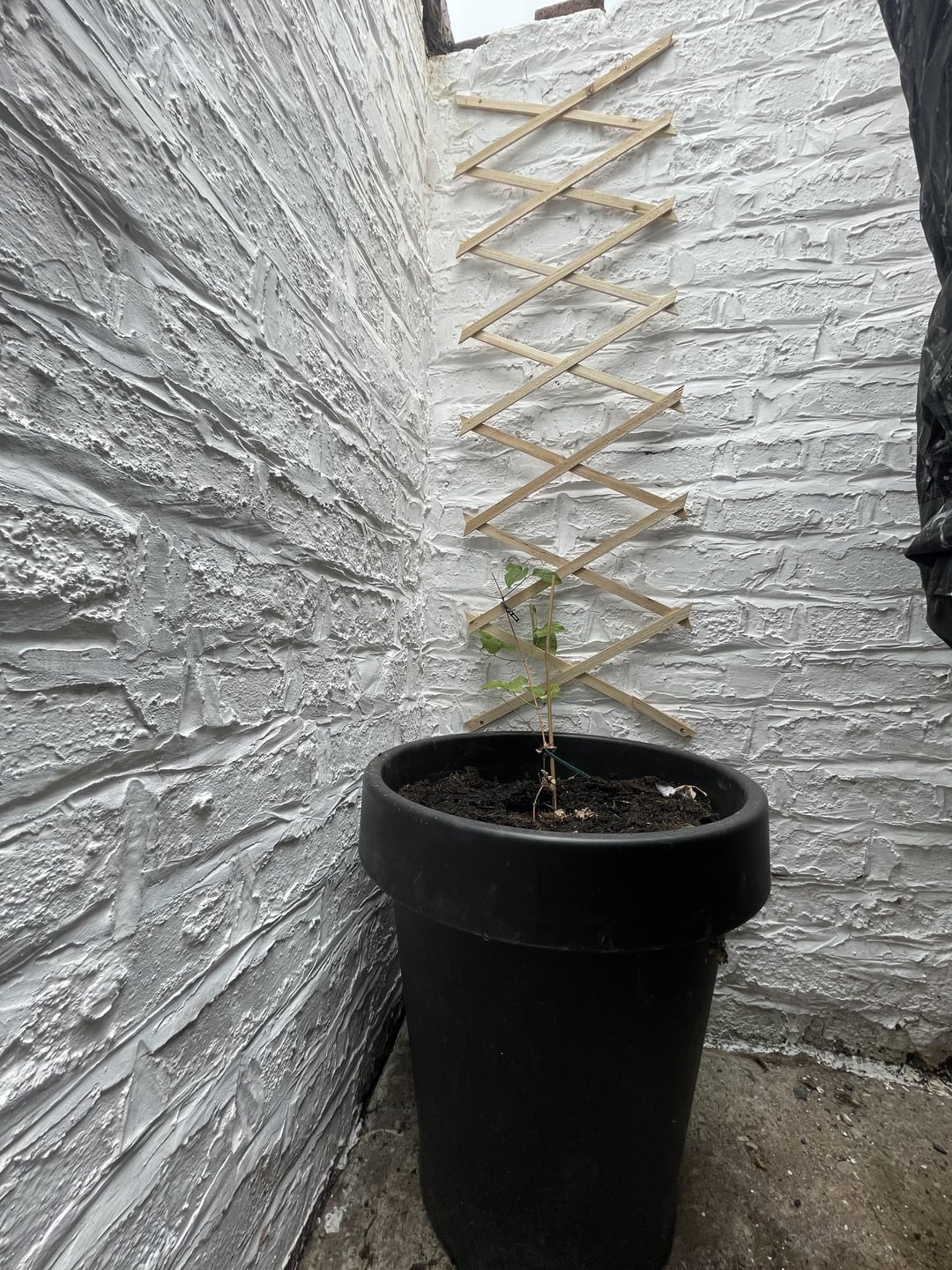 There’s no room for a shed so I turned the corner behind the L shape into a storage area for bikes and tools but managed to squeeze a clematis in, as recommended by a helpful Redditor! I was planning on getting a Montana Mayleen but ended up with a Piilu as it was on clearance in Tesco.