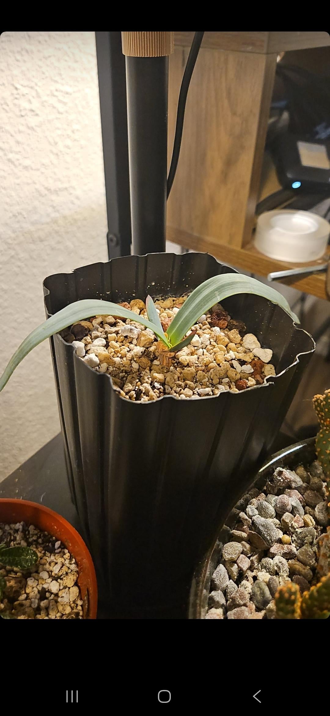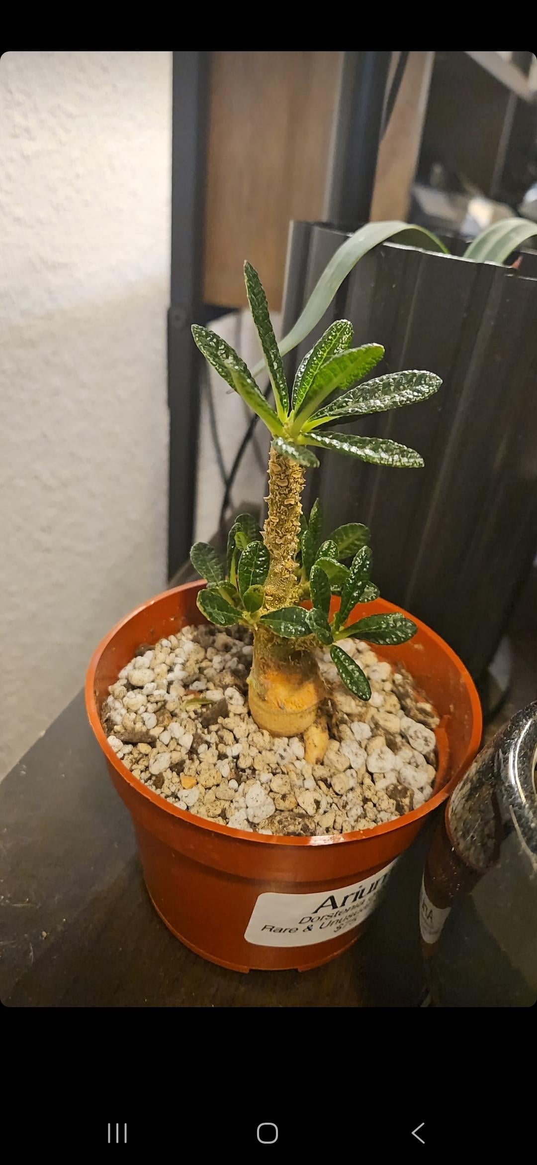My local plant shop (Arium Botanicals in Portland) had a desert plant event and had two of my dream plants for sale. Obviously I had to buy them! I've been reading some people say Welwitschia's don't need very tall pots. I don't plant on reporting my guy for a while until he us used to new parameters of my home, however, would the hasami porcelain pot I have attached be an appropriate choice when I do decide to repot(3.5inx4.8in)? Any tips for repotting? I plan on repotting my Dorstenia gigas soon too but I am less picky about pot selection for him. Any additional tips would be greatly appreciated but I'm glad to join this community with some very special plants!