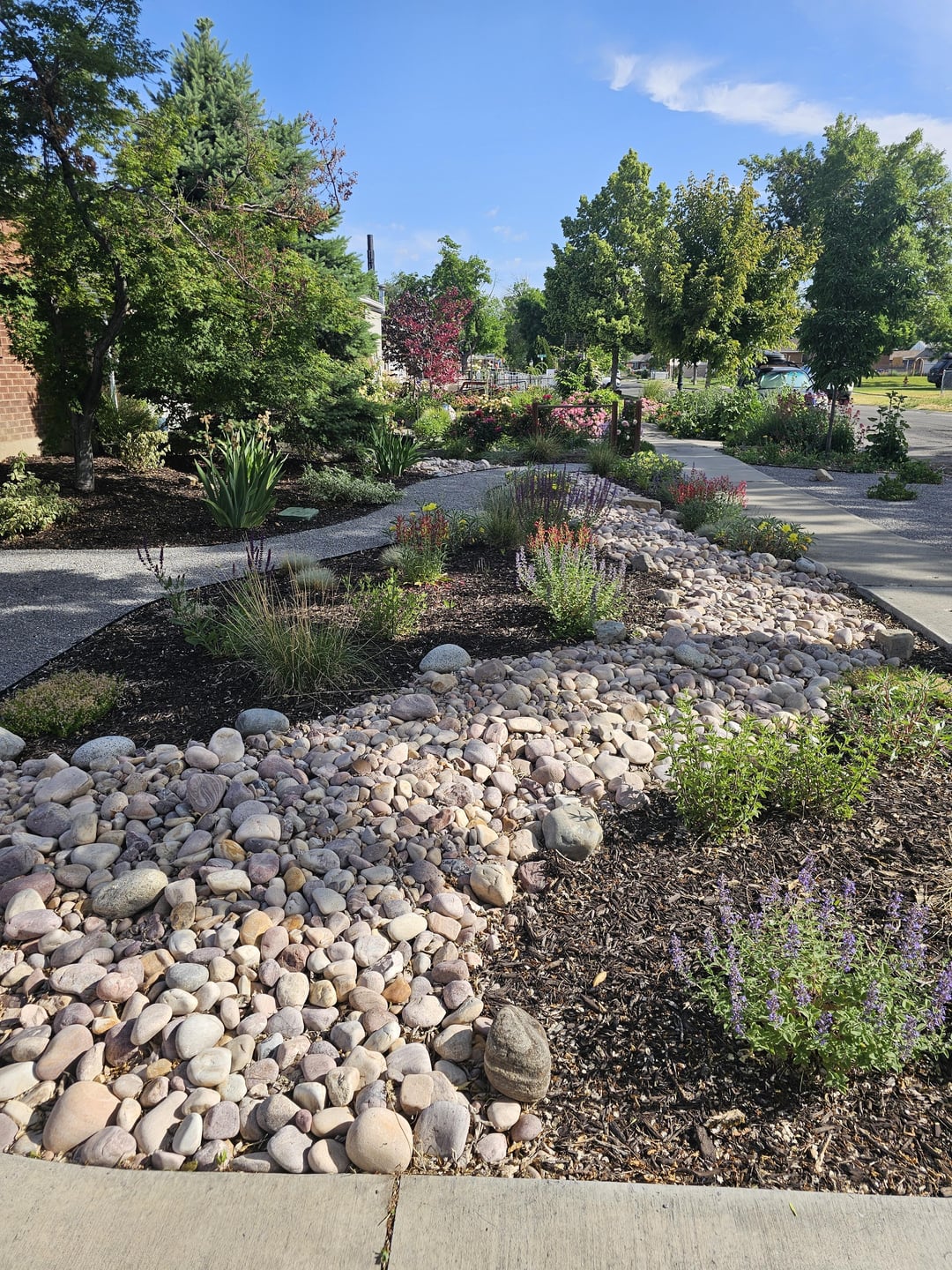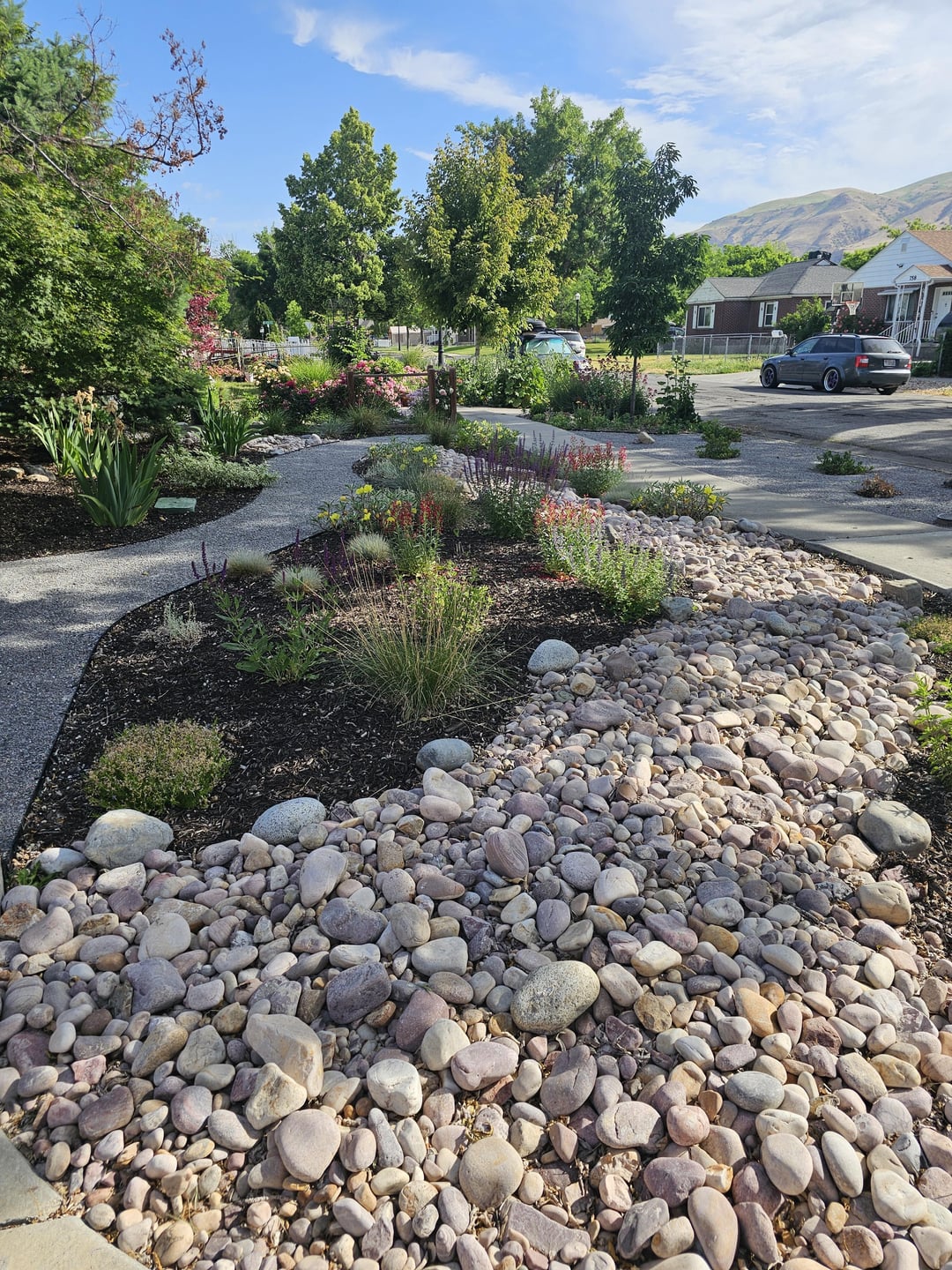 This looks awesome. I did something similar in my front yard to replace grass and it looks great, my only regret is not thinking about how hot the rocks would get in summer; it gets southwest exposure and damaged a tree with radiating heat up on its trunk right after being planted. I think I’m gonna cover it with cardboard soon to protect all the immature plants. Once things get bigger and more established, they won’t be so sensitive and they will shade out the rocks quite a bit hopefully! My in laws did it on their front yard as well and it’s worked out great since it is east facing.