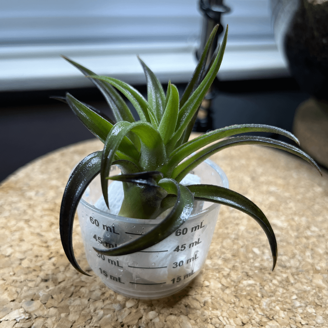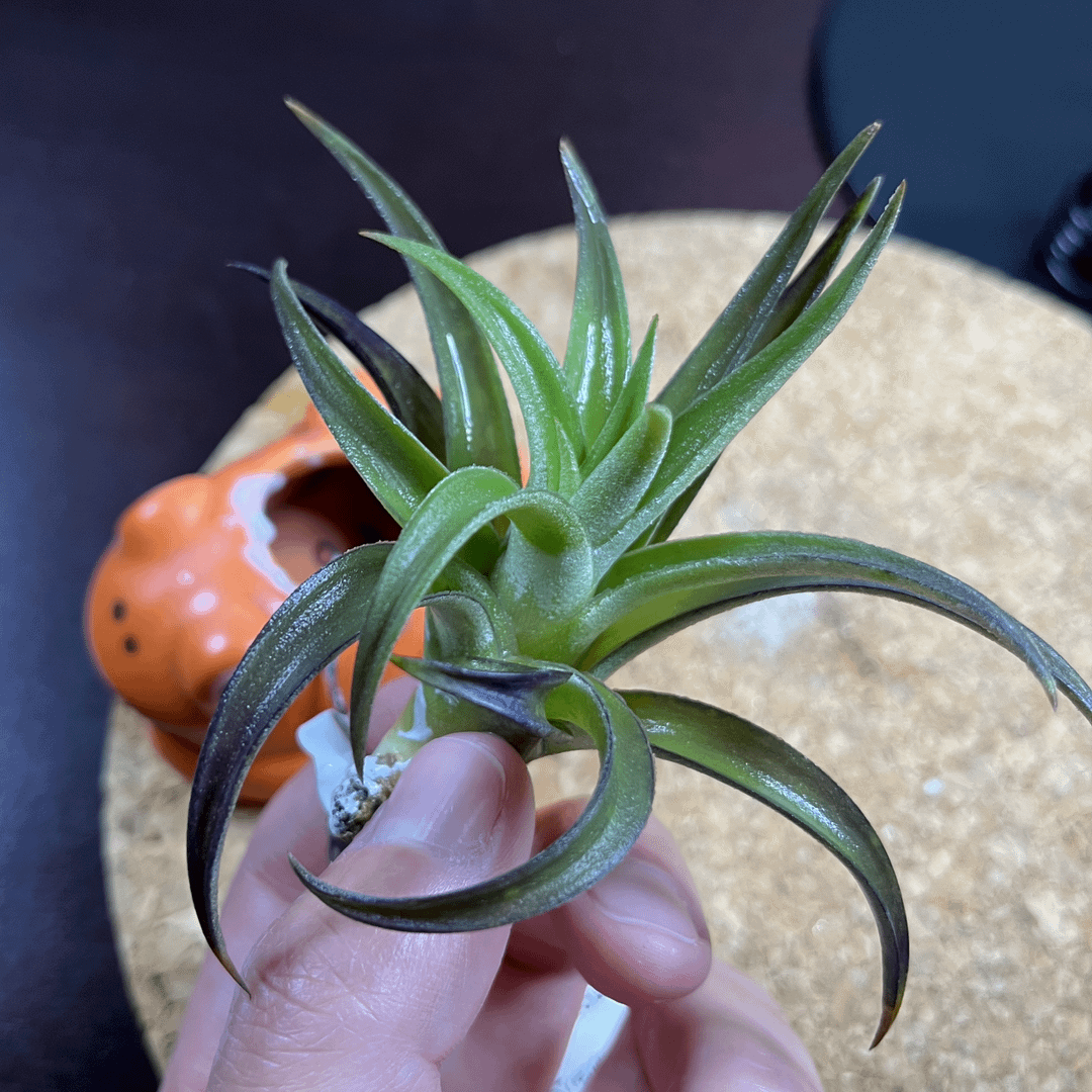 Picked up this LiveTrends Design air plant on clearance for $2. It was glued to its container, but I soaked it in some distilled for half an hour and freed it from its froggy prison.