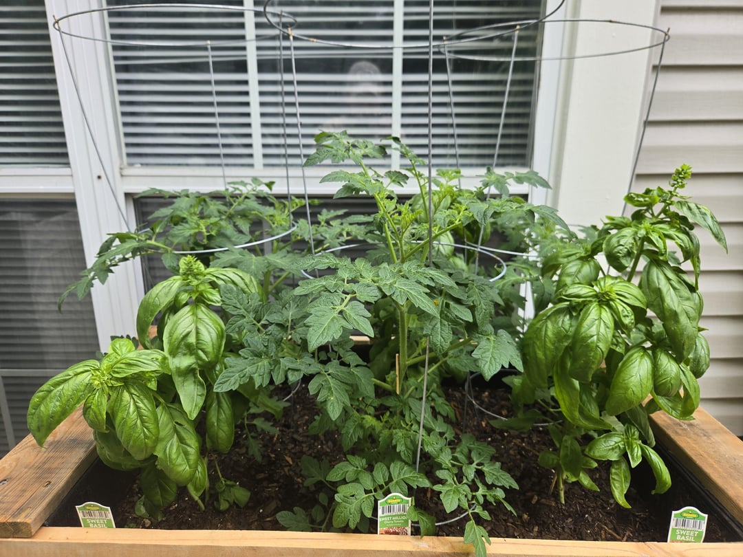 I can see your Basil going to flower, should chop that off or it’ll become bitter and inedible.