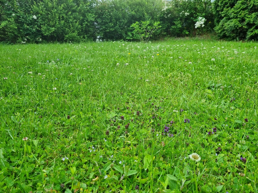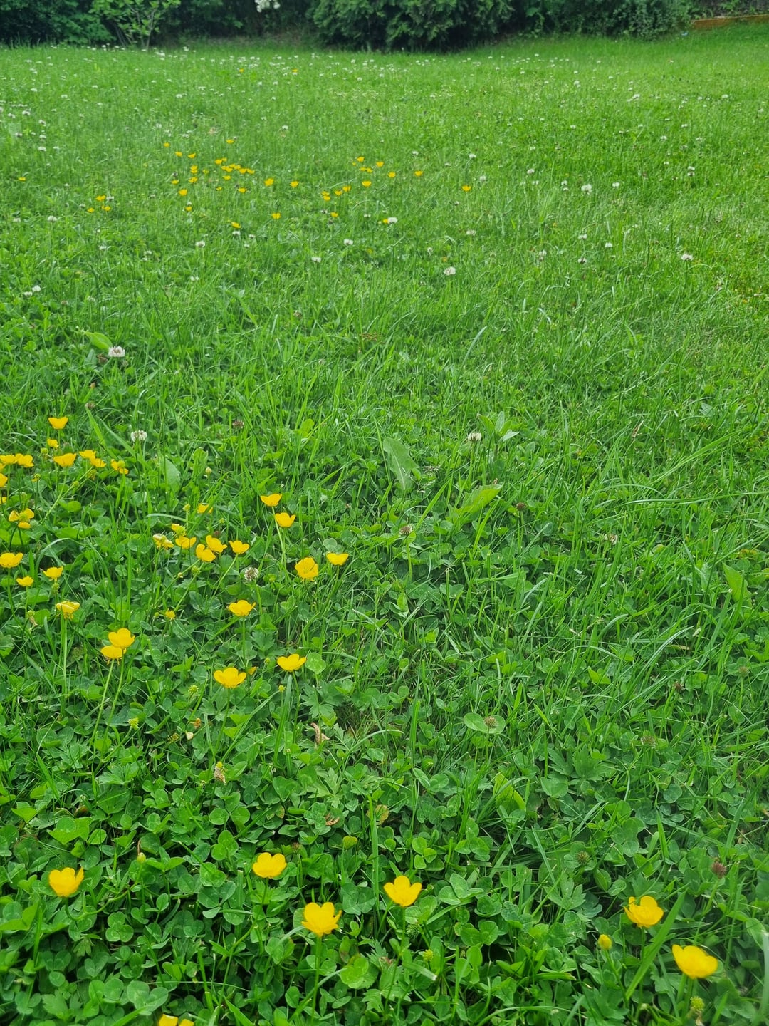 I wanted to share how the back-yard looks after wildflower seeds were planted two years ago. Dandelions are no longer a problem, it's super green and doesn't have to be cut as often.