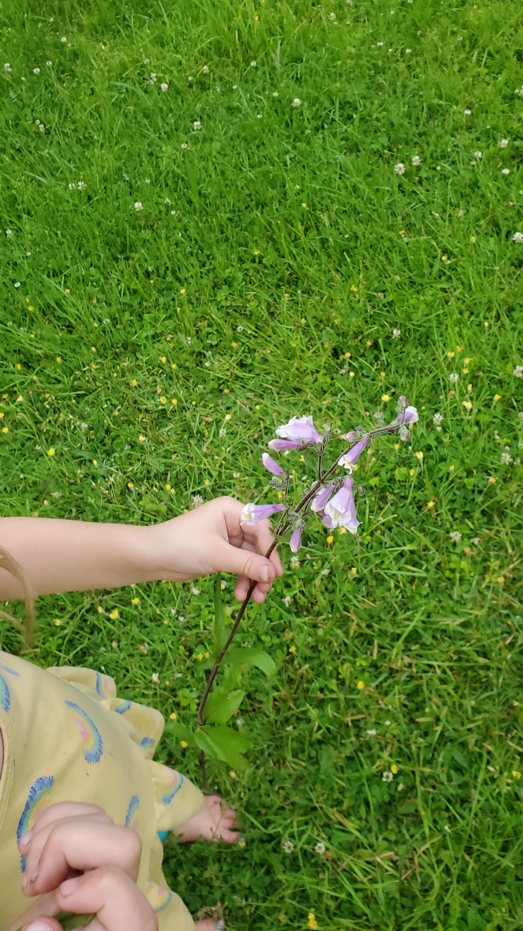 My husband was pushing her around the yard in her toy truck and I guess she spotted this and snagged it on the way by. Northeastern Penstemon! I'm bummed that she picked it but I'm excited they're coming up, it's from the part of the yard we seeded with natives a couple of years ago. I get so excited when we find new natives on the property.