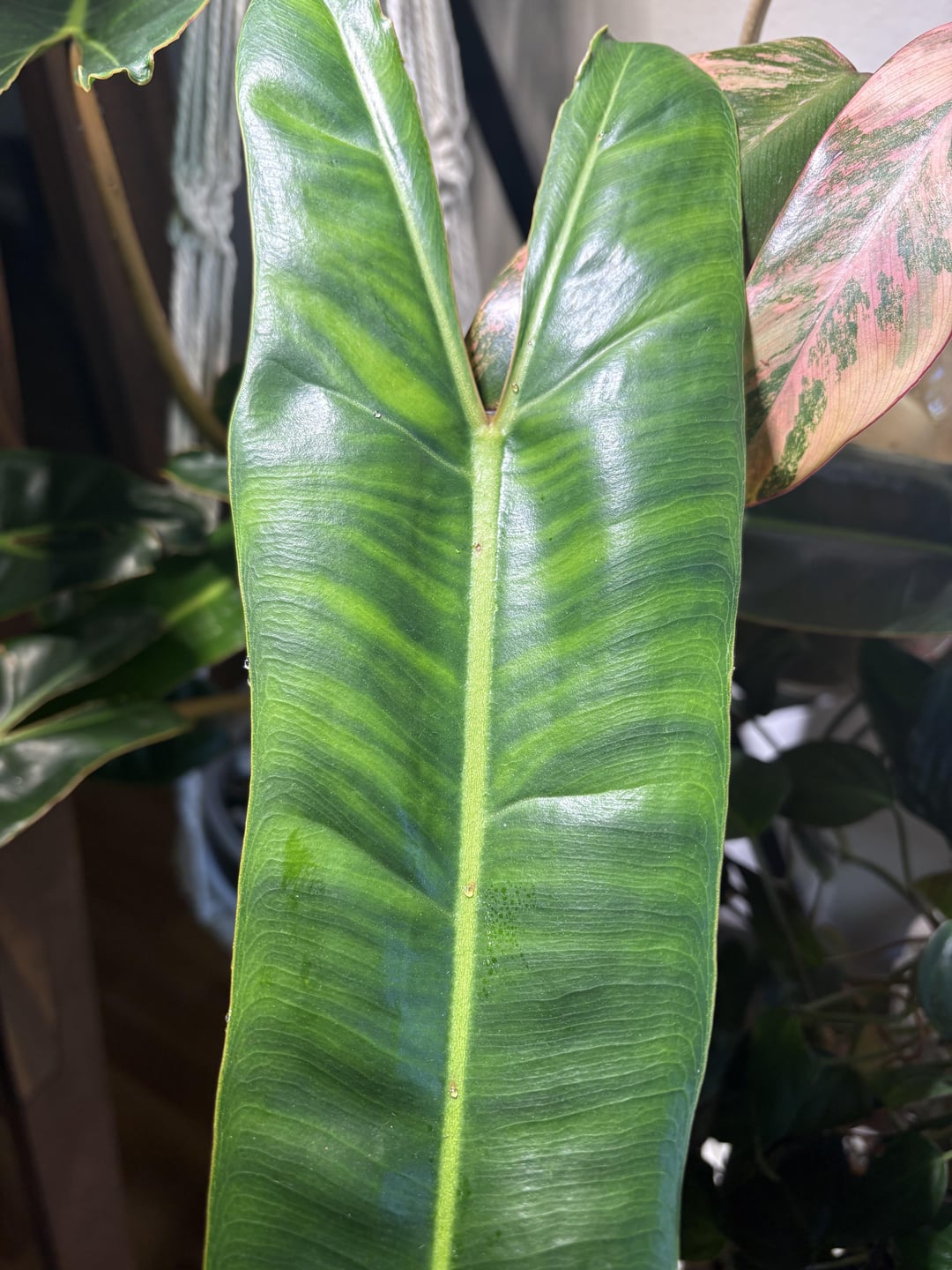 This is my first philodendron billietiae and I absolutely love it 😍 the newest leaf has come out big but also semi striped. It’s about 4 weeks old.