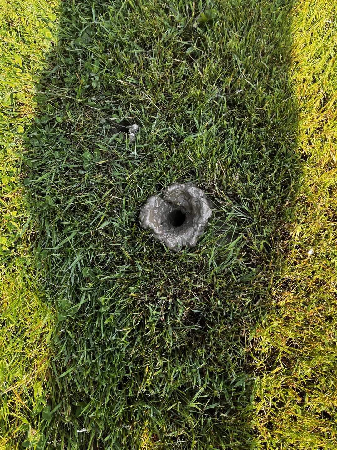 Looks like a direct push soil boring that was abandoned with bentonite.