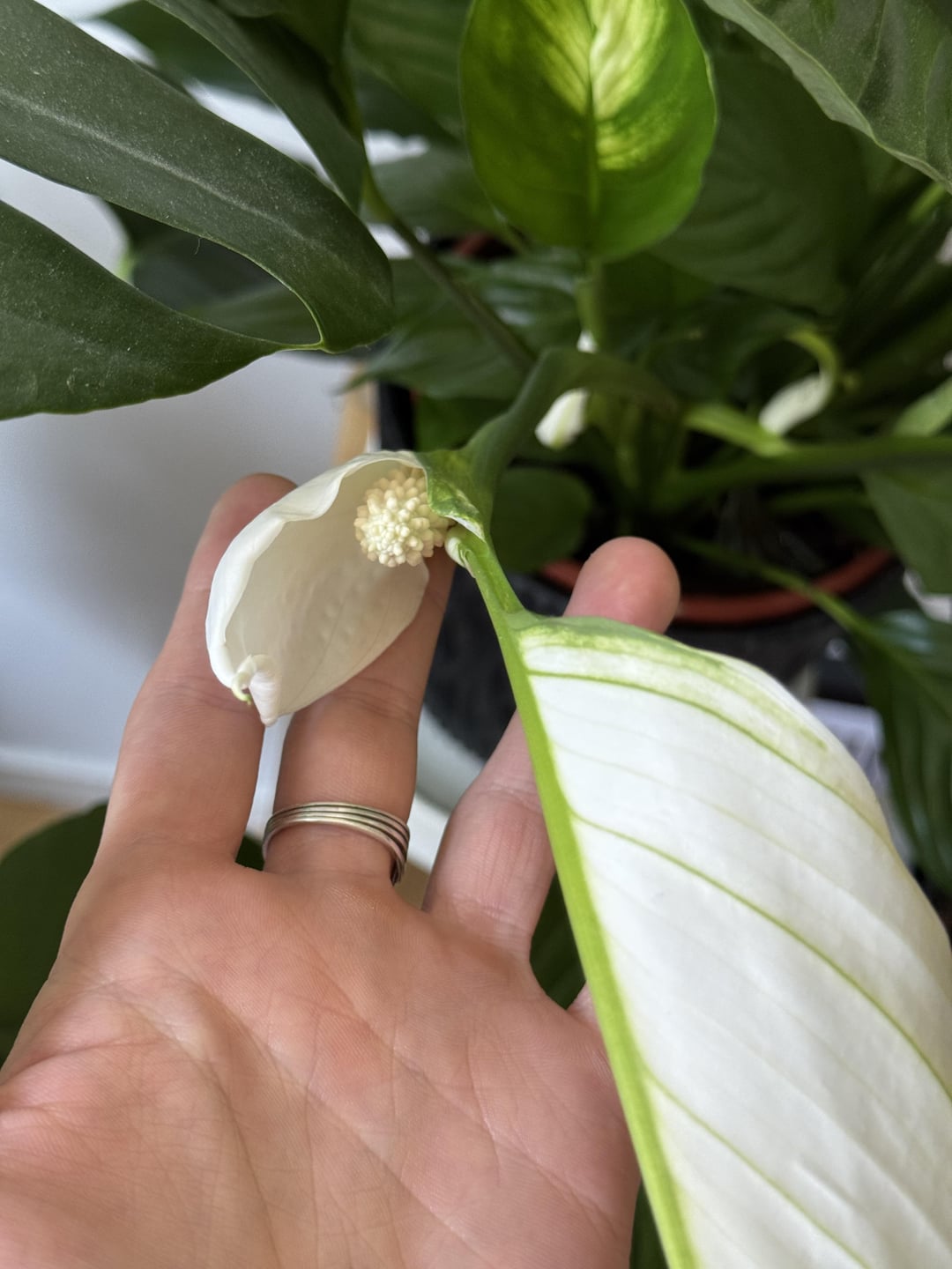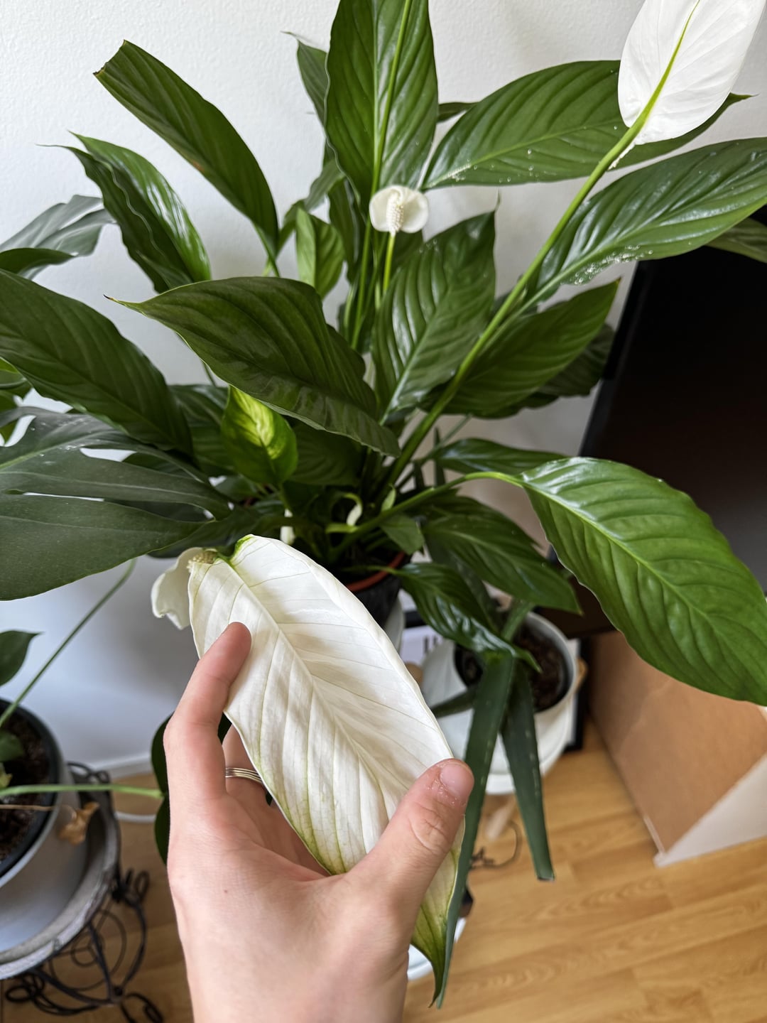 Fun fact: peace lily “flowers” *are* actually modified leaves (spathes). The actual flowers are tiny and located on the spiky thing (spadix)