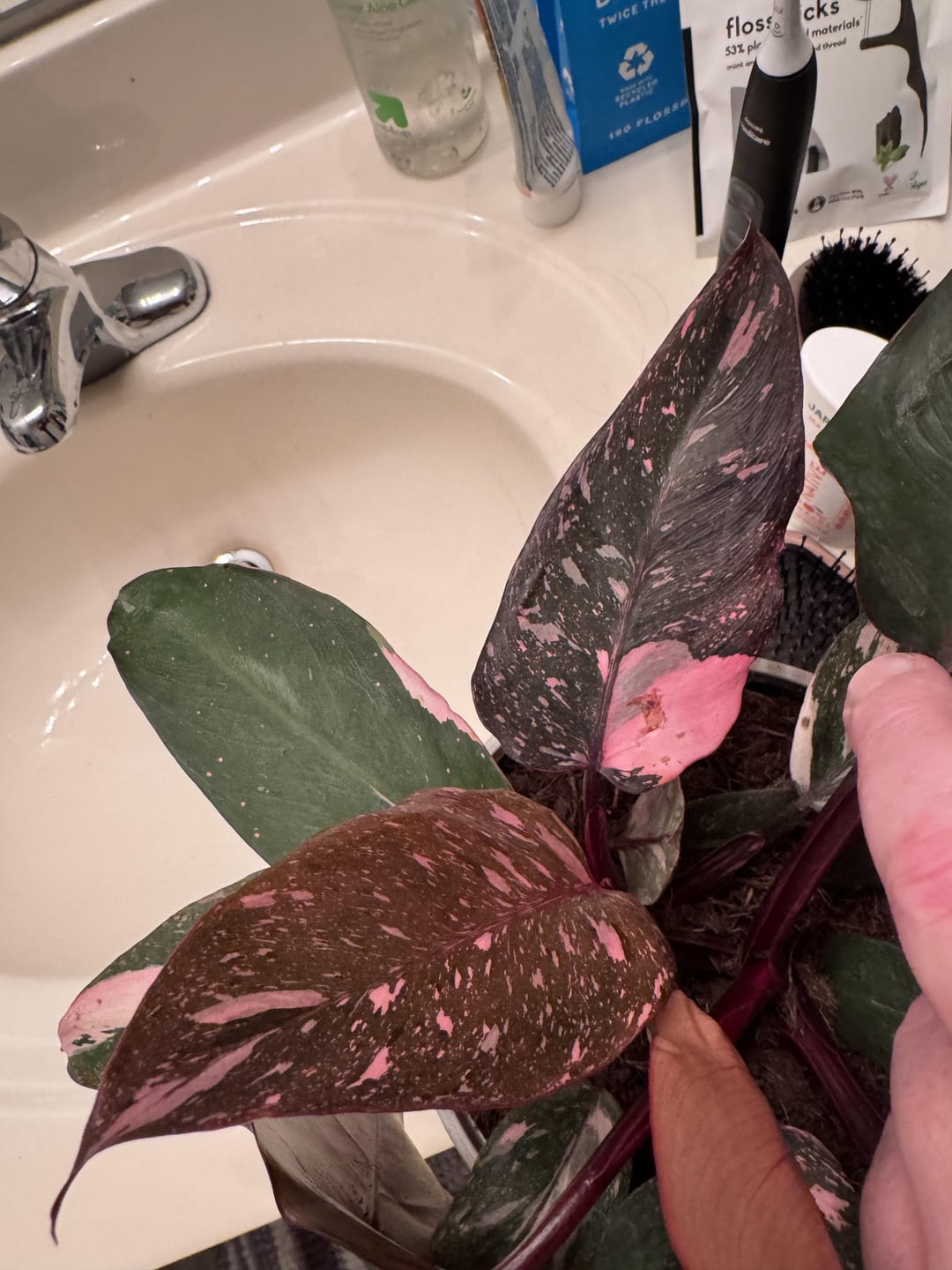 Side note, I took the pictures in the bathroom because I’m currently wiping off the leaves lol.