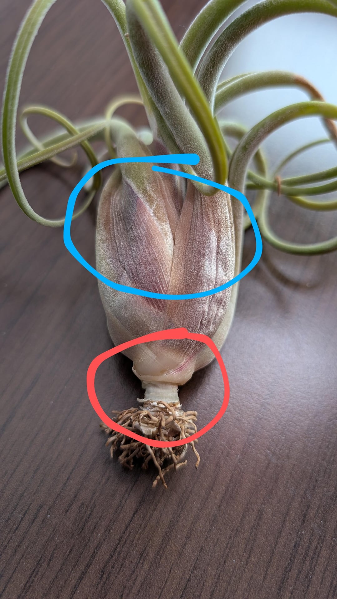 kkzzxx 4 months ago It’s healthy and doesn’t need more than standard air plant care. The blue part is dried leaves, doesn’t look very good but no harm either