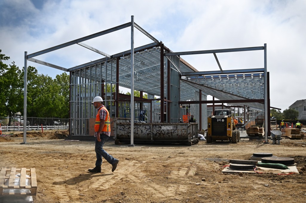 The library walls and roof are being framed, and the project is on schedule, Public Works Director Julian Skinner said. Work is expected to wrap up in March 2026.
