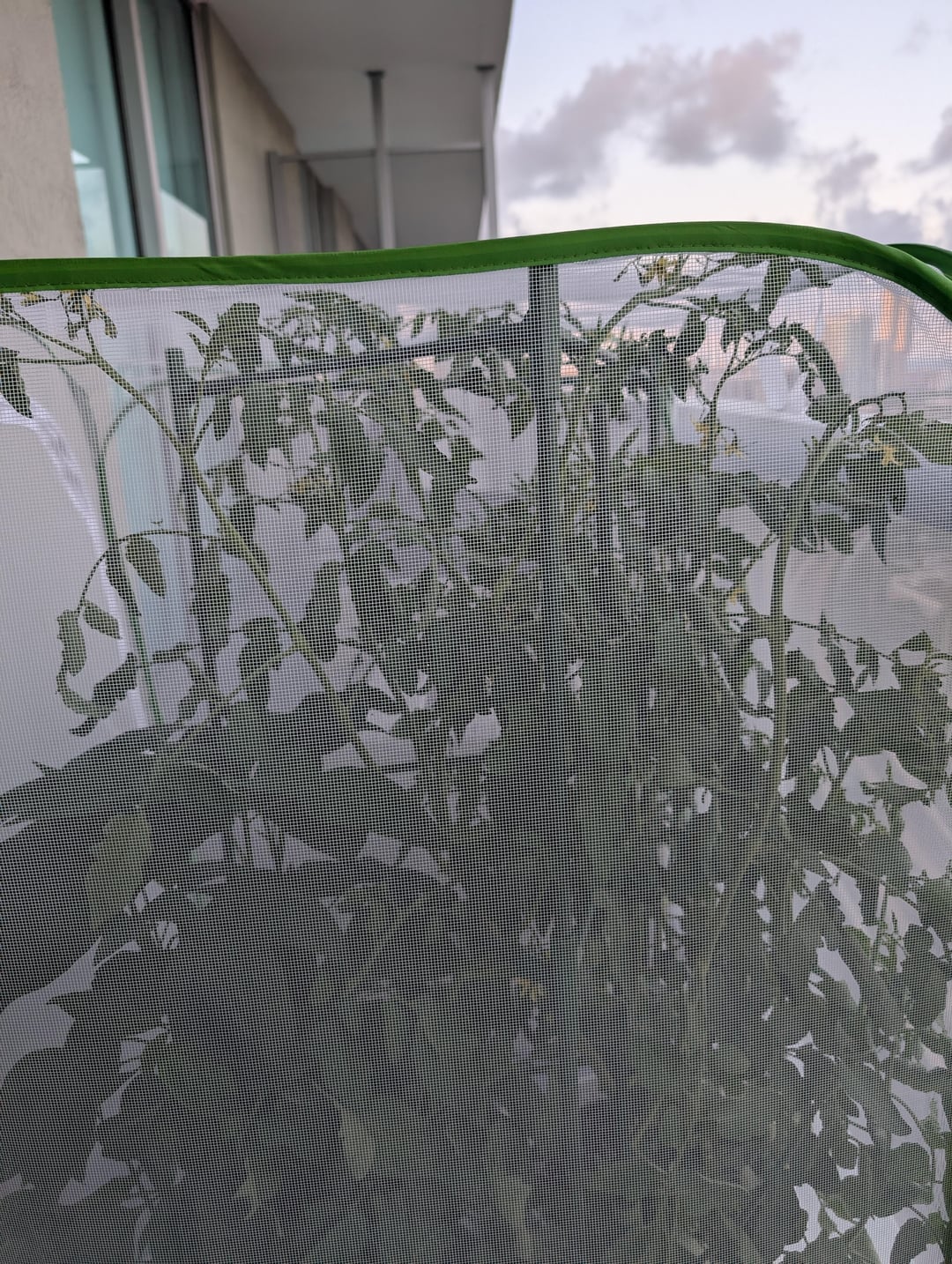 To the folks worried about bees, don’t be. With wind that strong they’ll shake and self pollinate. The only problem covering tomatoes is if they’re not shimmied occasionally (by wind or human works).