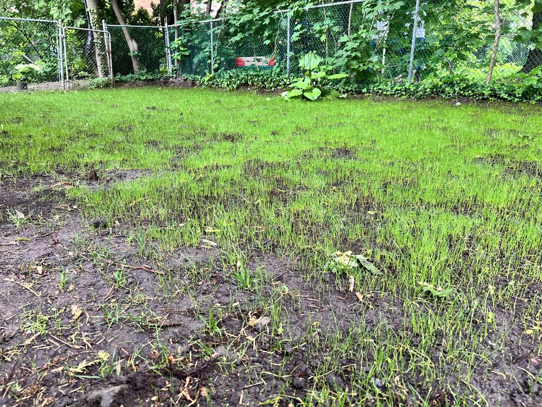 I’d make sure the ground is dry and hit it with my lightest weight push mower on like a 3 or 4 setting. Just because the ground looks kinda wet still and I wouldn’t want to dig it all up.