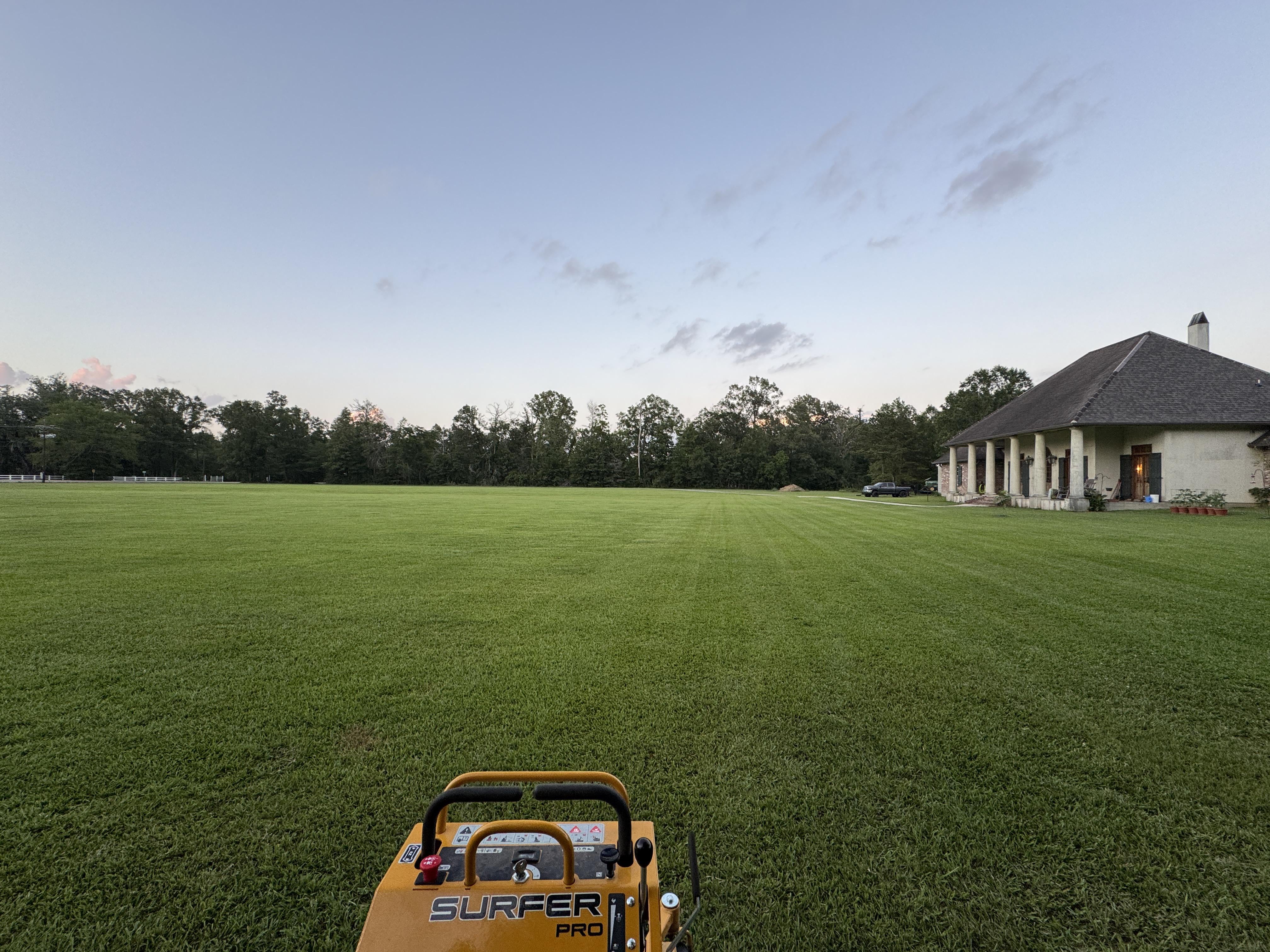 It’s a wretched mix of centipede, bermuda, dallis, bahia, clover, dandelions and every other plant/weed that’ll grow here, but I’m making progress. Trying to get St Augustine to take over. Cut mostly with a 60” zero turn. I cut near the house on the small standup. Next big project is soft washing the house… maybe.
