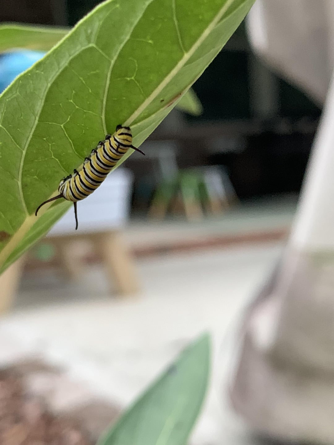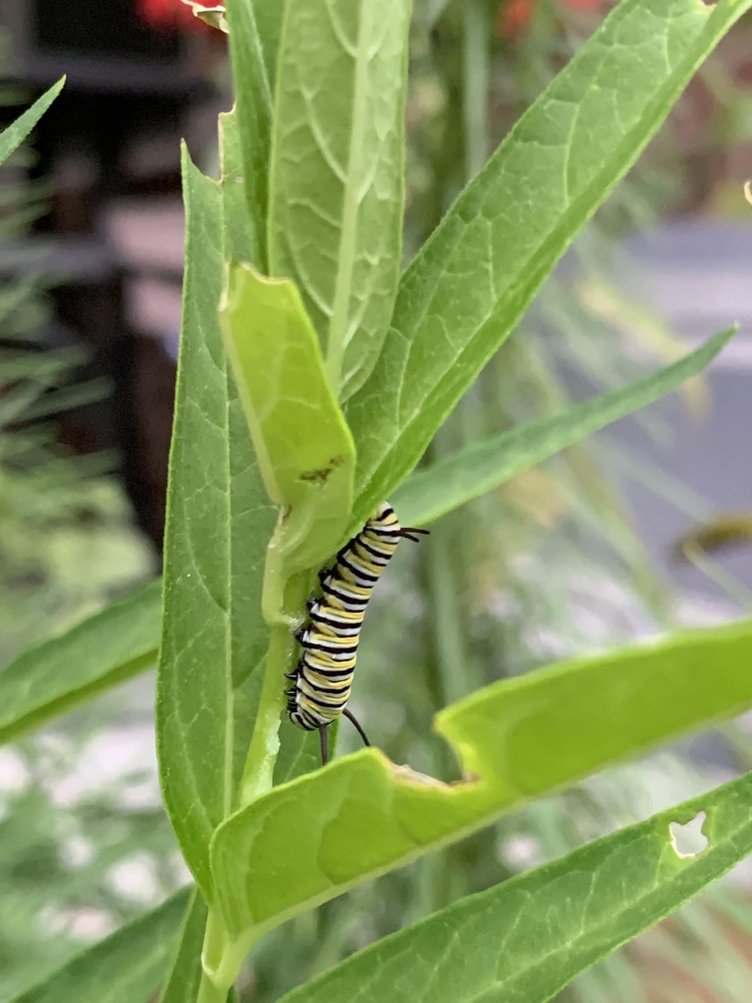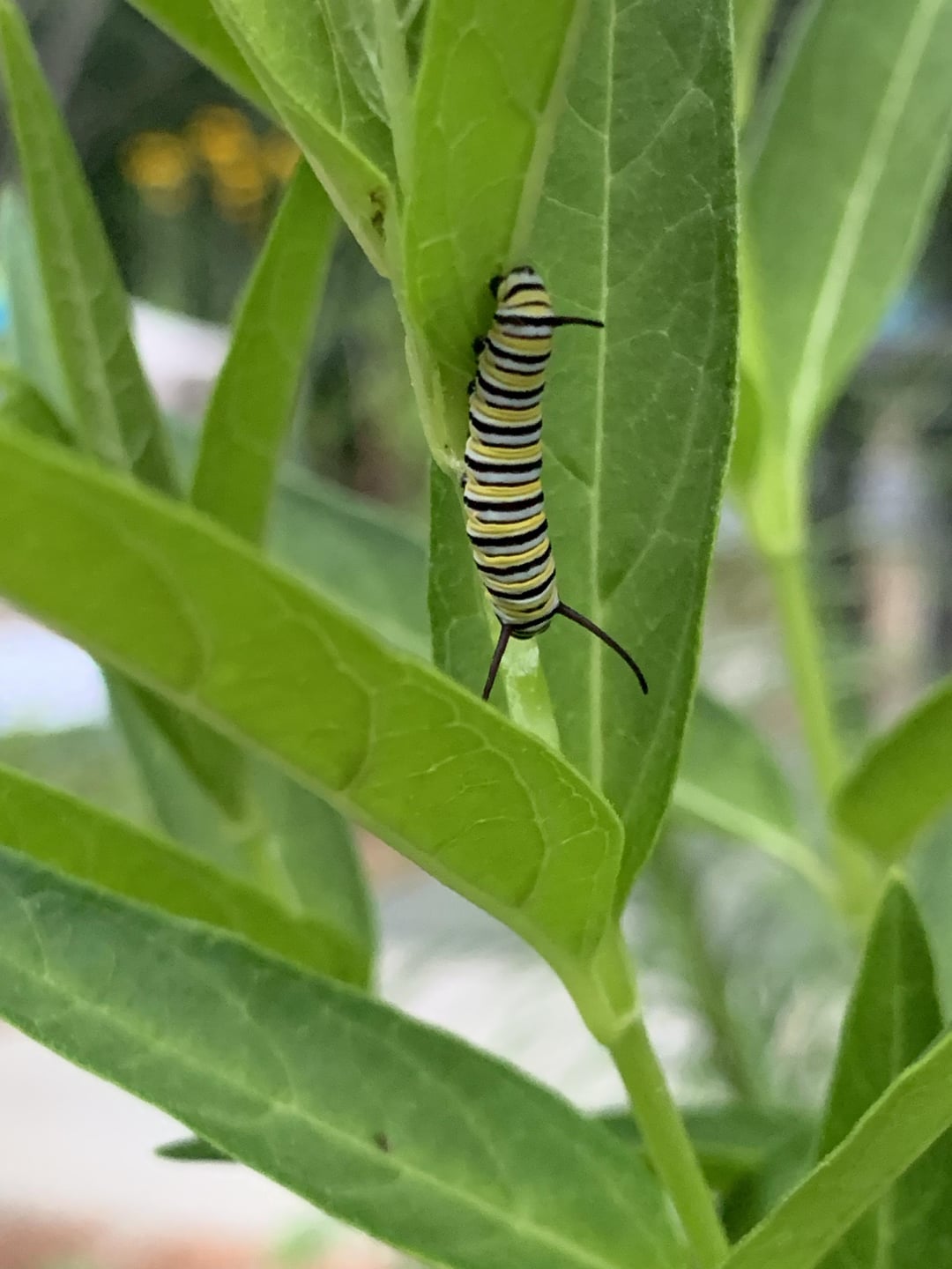 I was waking through the garden after work with my wife and something caught my eye on the swamp milkweed (Asclepias incarnata) and it was this little guy! I ran to check the others and found a total 3 monarch caterpillars between the 6 plants. I understand that they are a very specialized plant and caterpillar, but nonetheless we are super excited to see them and for the bigger movement they symbolize