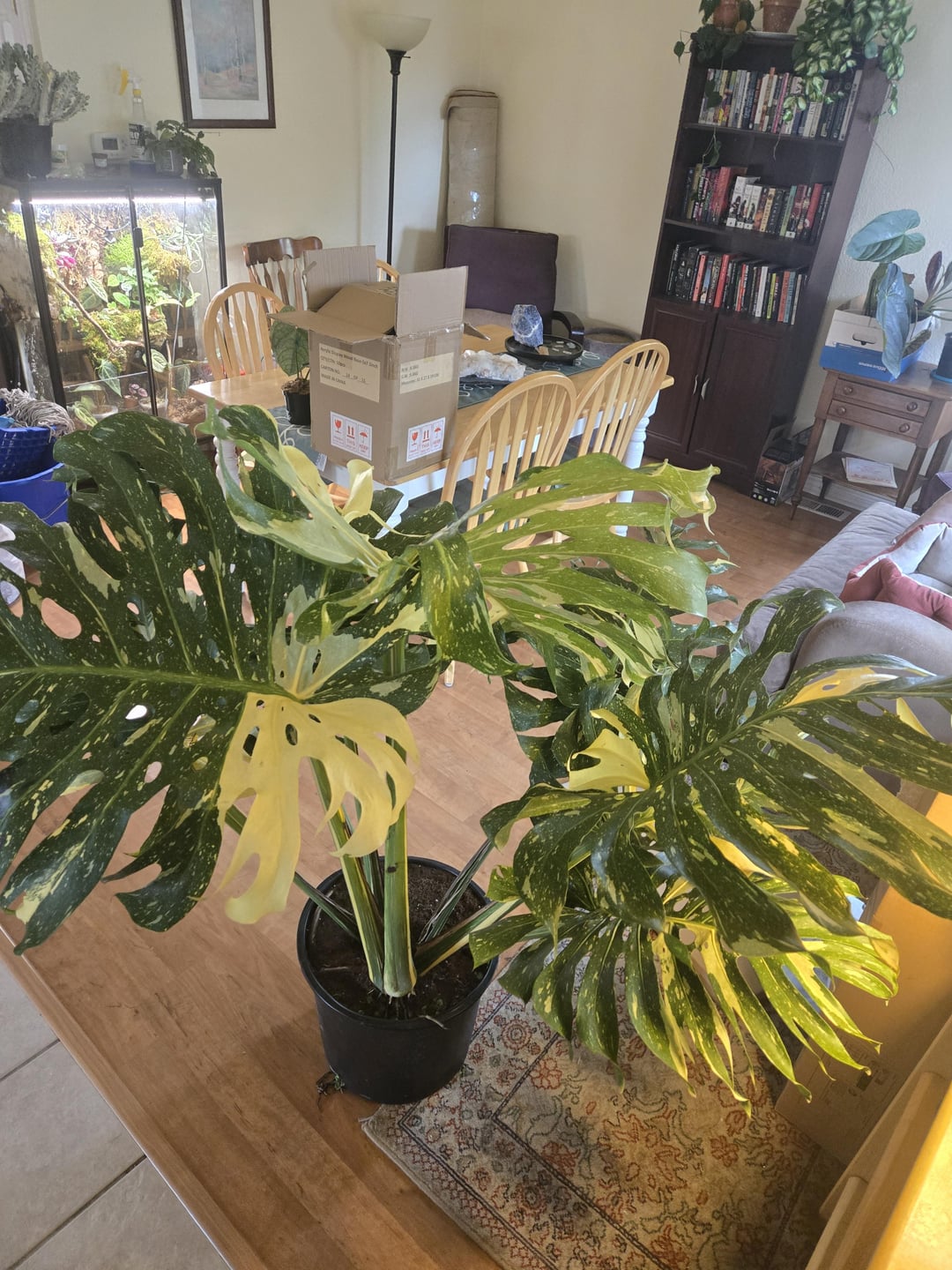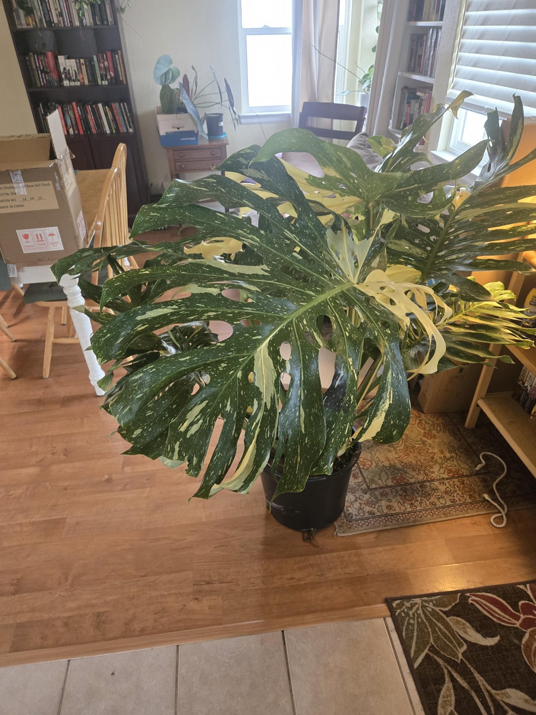 Pray you have enough room for it to grow. I bought a small one and it grew and grew and took over my bank of windows in my living room. I had to donate it to a nursing home where they had a huge picture window and room for it to grow into the giant beauty it became.
