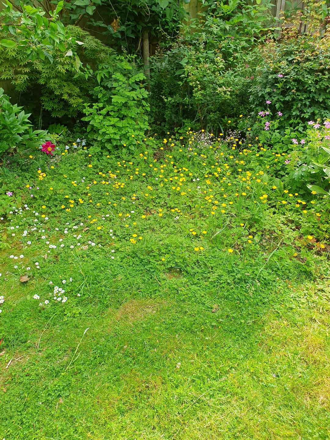 Based in the SE UK. The pictures show a freshly mowed garden that has a corner full of wild flowers (mostly daisies and buttercups).