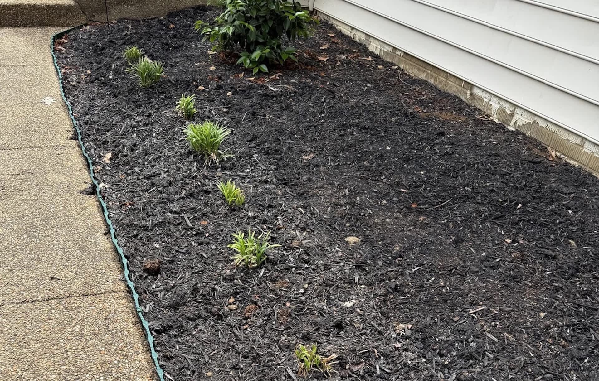 “You don’t need to replace it with anything,” another commented. Going green “looks more natural, has less upkeep, and costs less. Instead, lower the grade an inch or two so the top of the mulch is a tiny bit lower than the concrete.”