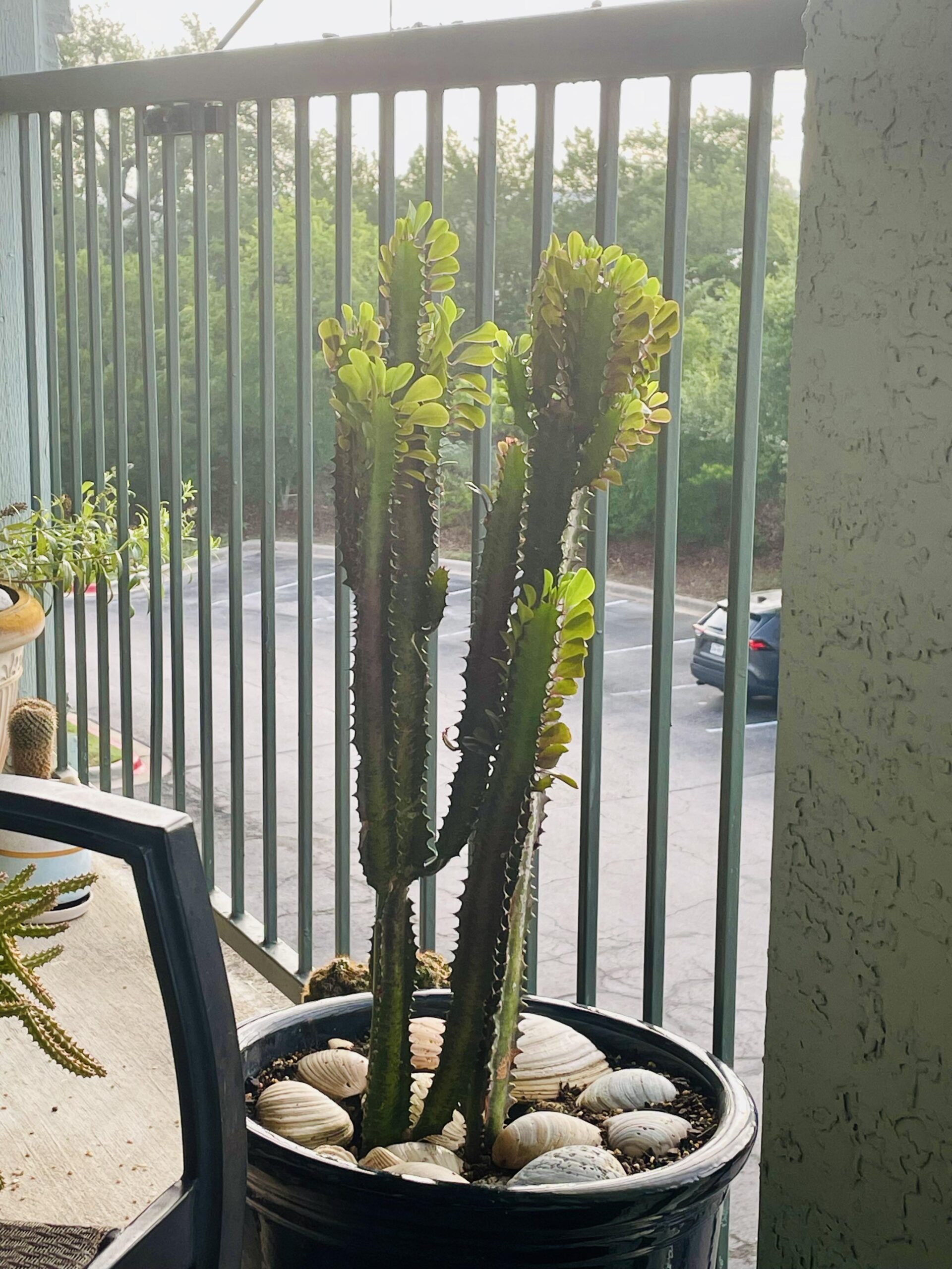 I’m pretty proud of this guy! Last year I accidentally broke it in half trying to repot it, so the piece on the left with the limb at the base is what was the top half that I rooted, and the long skinny guy on the right was the original tree. Both are just going crazy and putting out tons of branches and leaves!