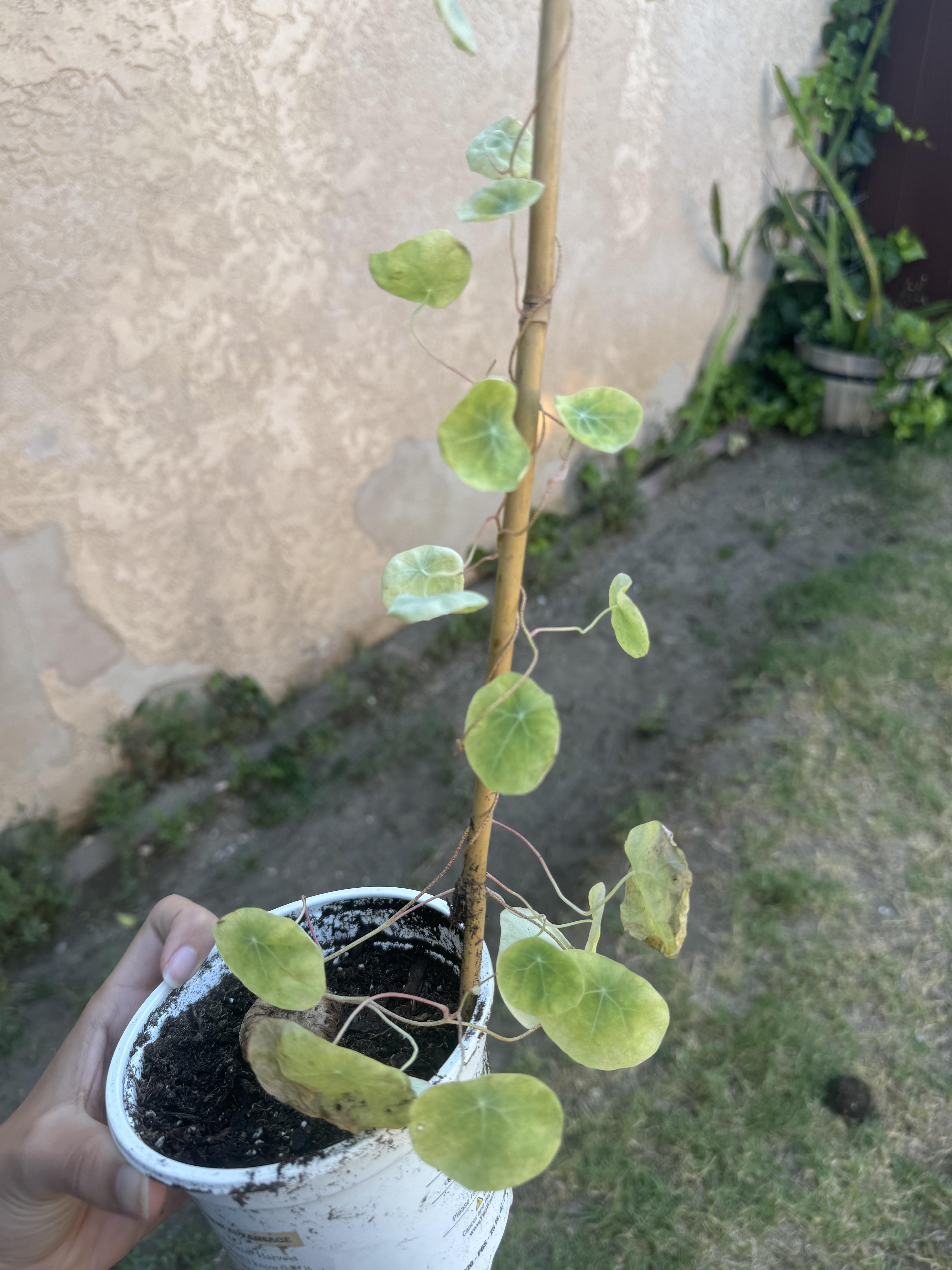 It’s in a temporary pot but it’s been like this for already a month and a couple of weeks slowly turning yellow all over and browning I’m not sure what I’m doing wrong or what to do to help it so please give some suggestions