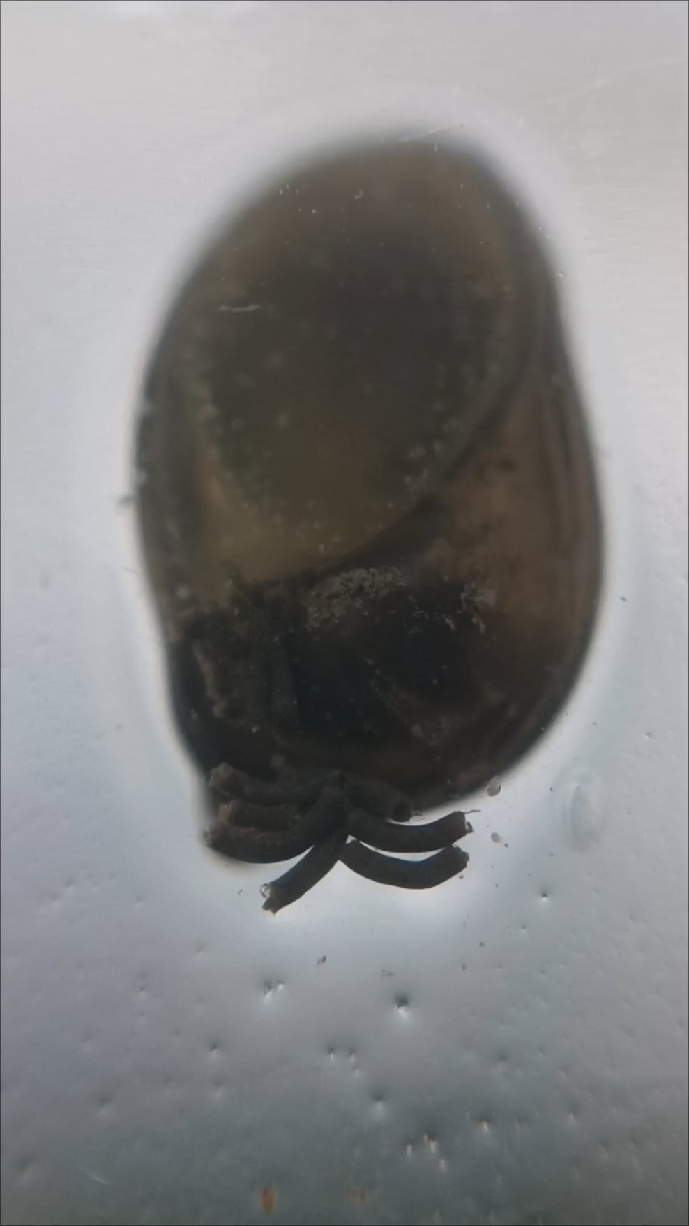 But in the small amount of water stuck to the snail there are these small white things frantically moving about.