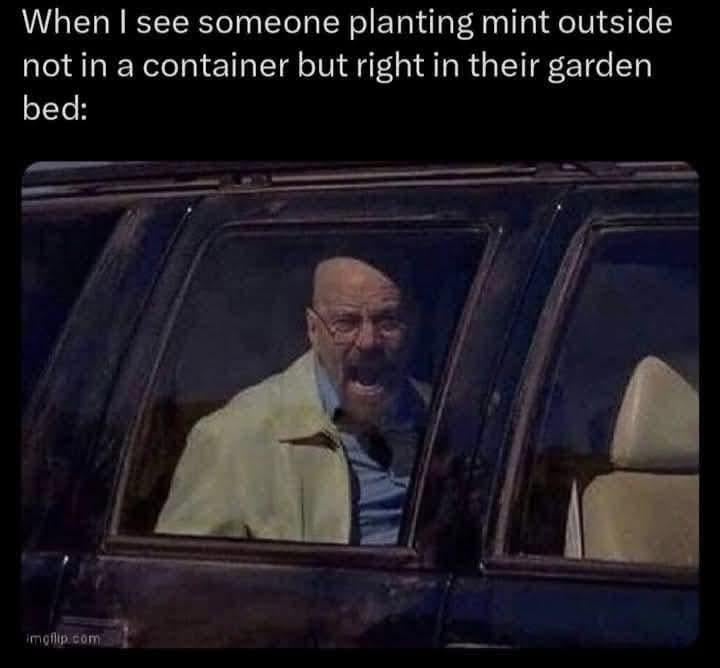 Not me over here who can’t event get mint to grow. I tried seeds in pots indoors and outdoors and got a single sprout that promptly died.