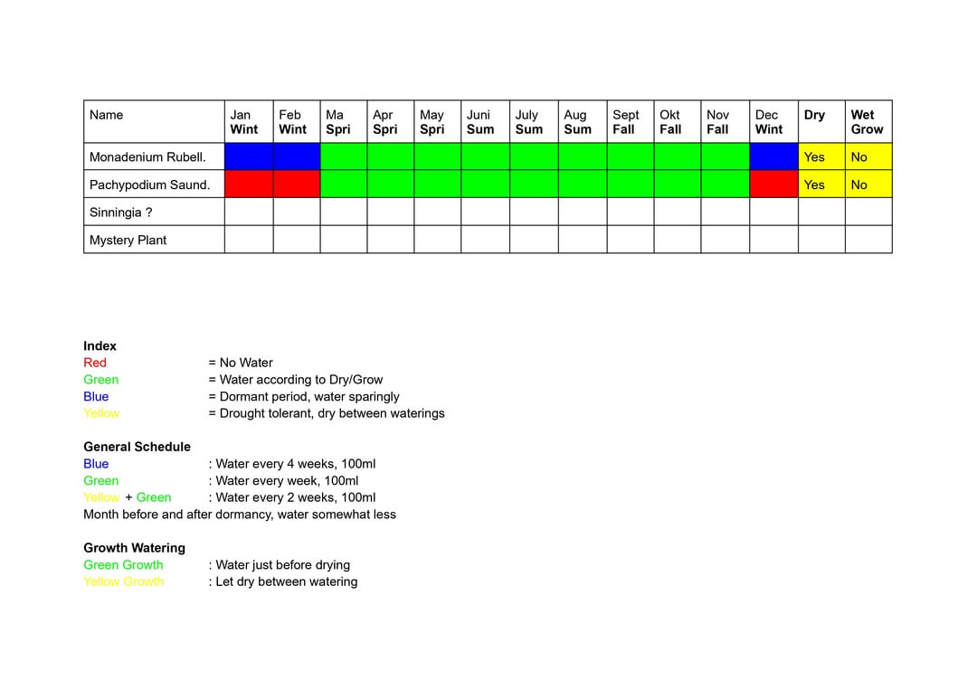 Hello, I updated my watering schedule to hopefully be accurate, I will always water according to whether the plant IS growing, not when it is growing.