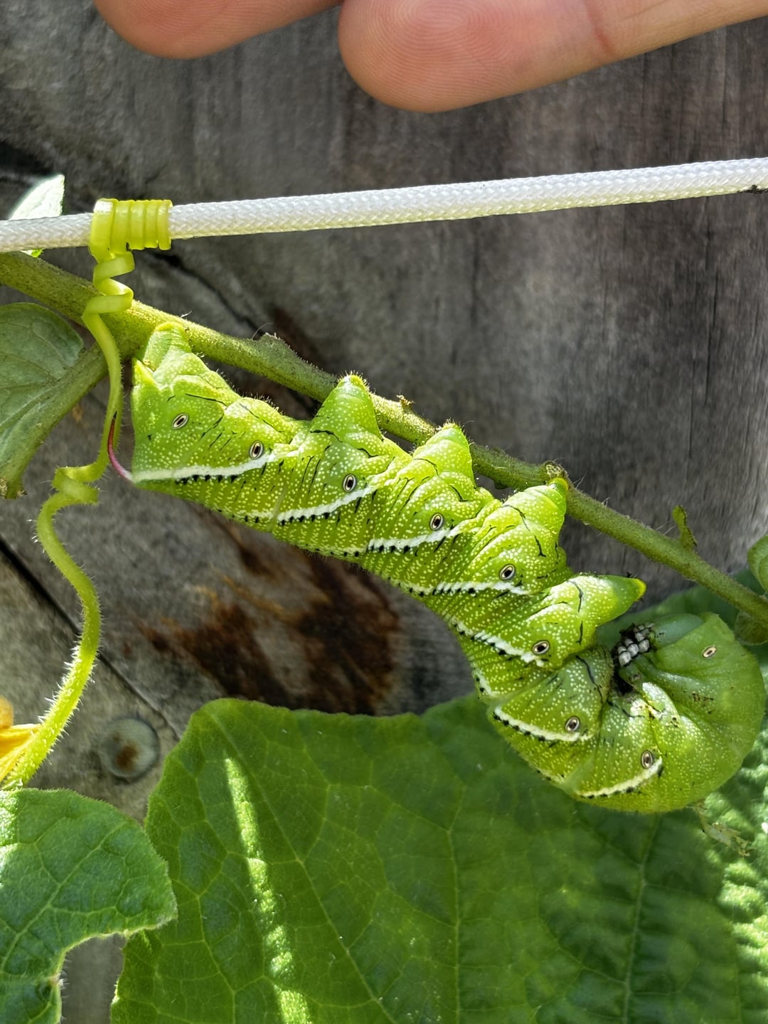 Now that is some quality bird or reptile food. (The hornworm ofc, not the tomatoes.)