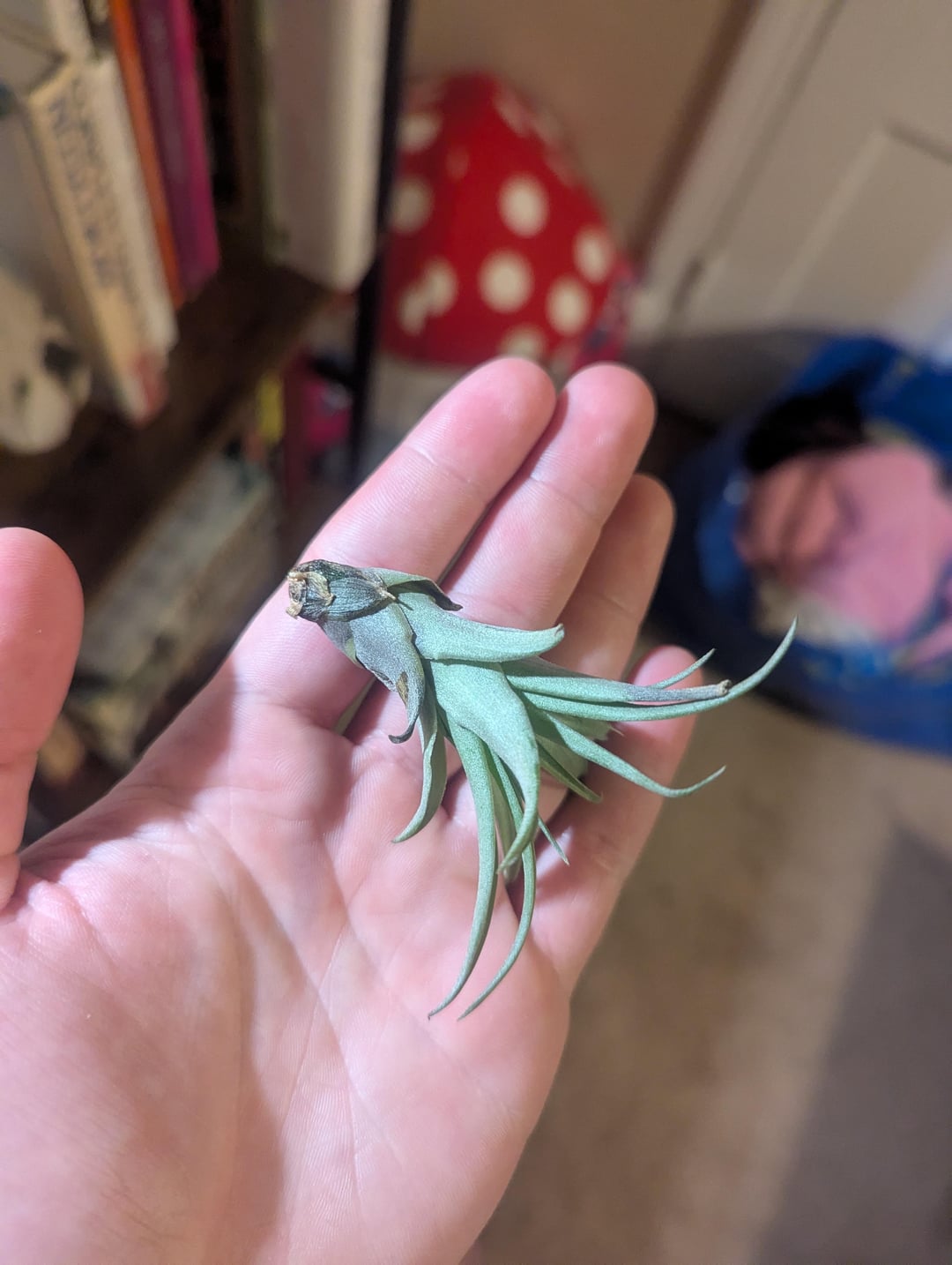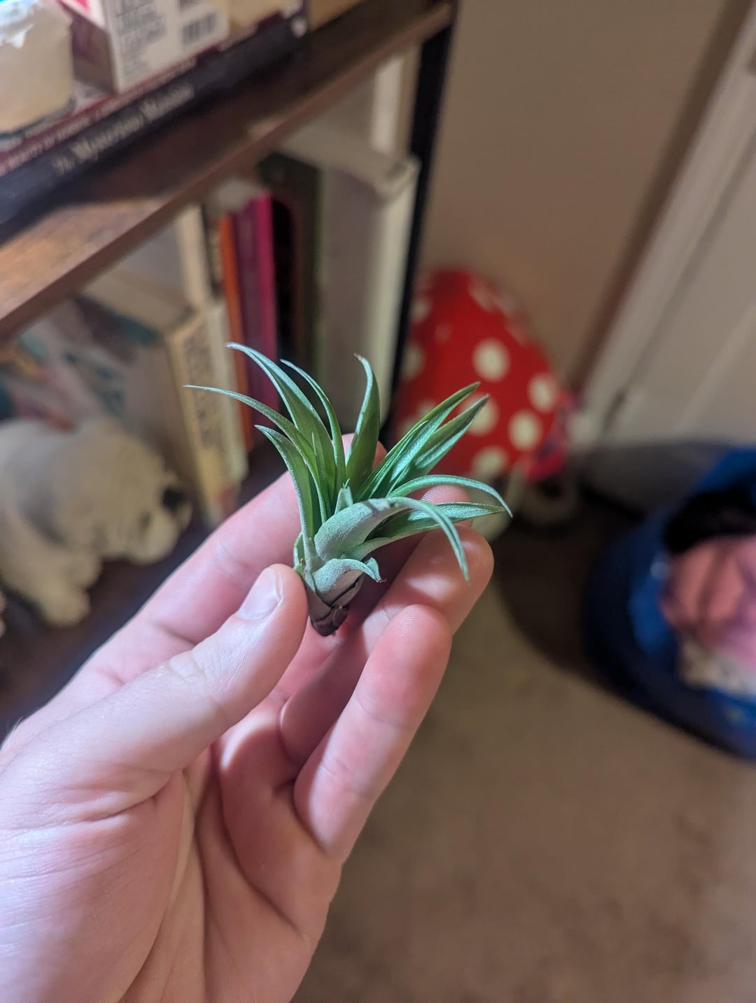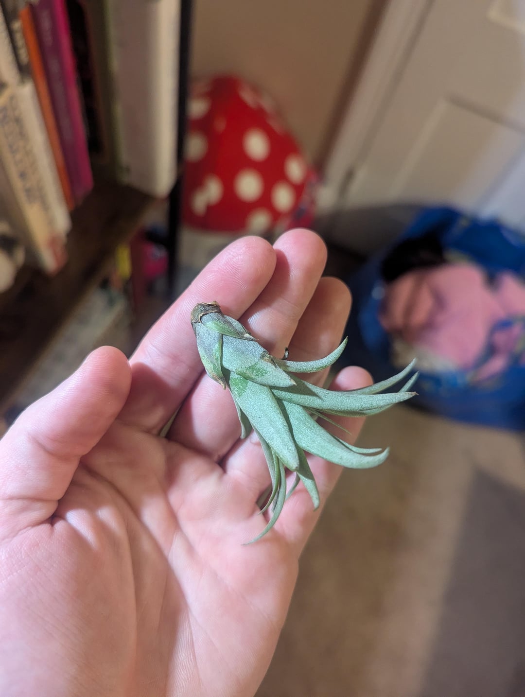 Yeah it’s definitely a tillandsia, what kind of, I’m not sure. What I would recommend is dipping it in some water soak it gets a light soaking and just leaving it somewhere to air out and get sun. Like I have all of mine on a bookshelf.