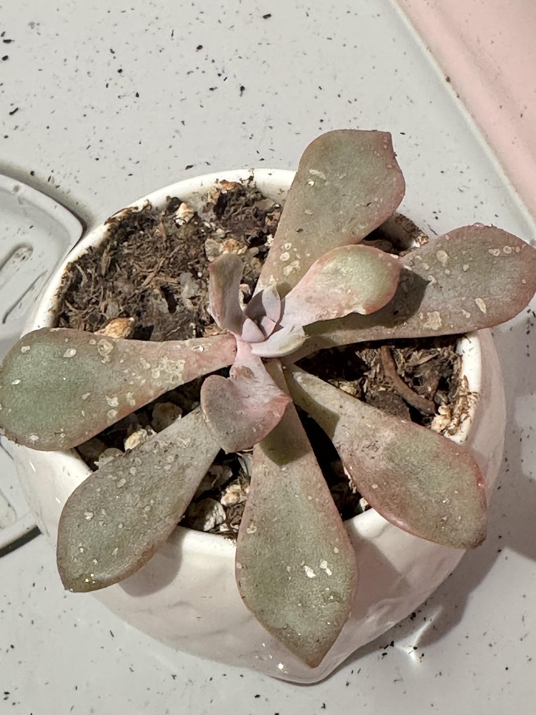 Markings look like damage from being outside, not entirely sure. I would say it def needs a repot into a pot with a drainage hole (if not already in one) in a more airy mix. If kept outdoors, succulent soil and lots of perlite or gritty mix would be ideal. Also these need way more light. Only water when soil is bone dry. Good Luck!
