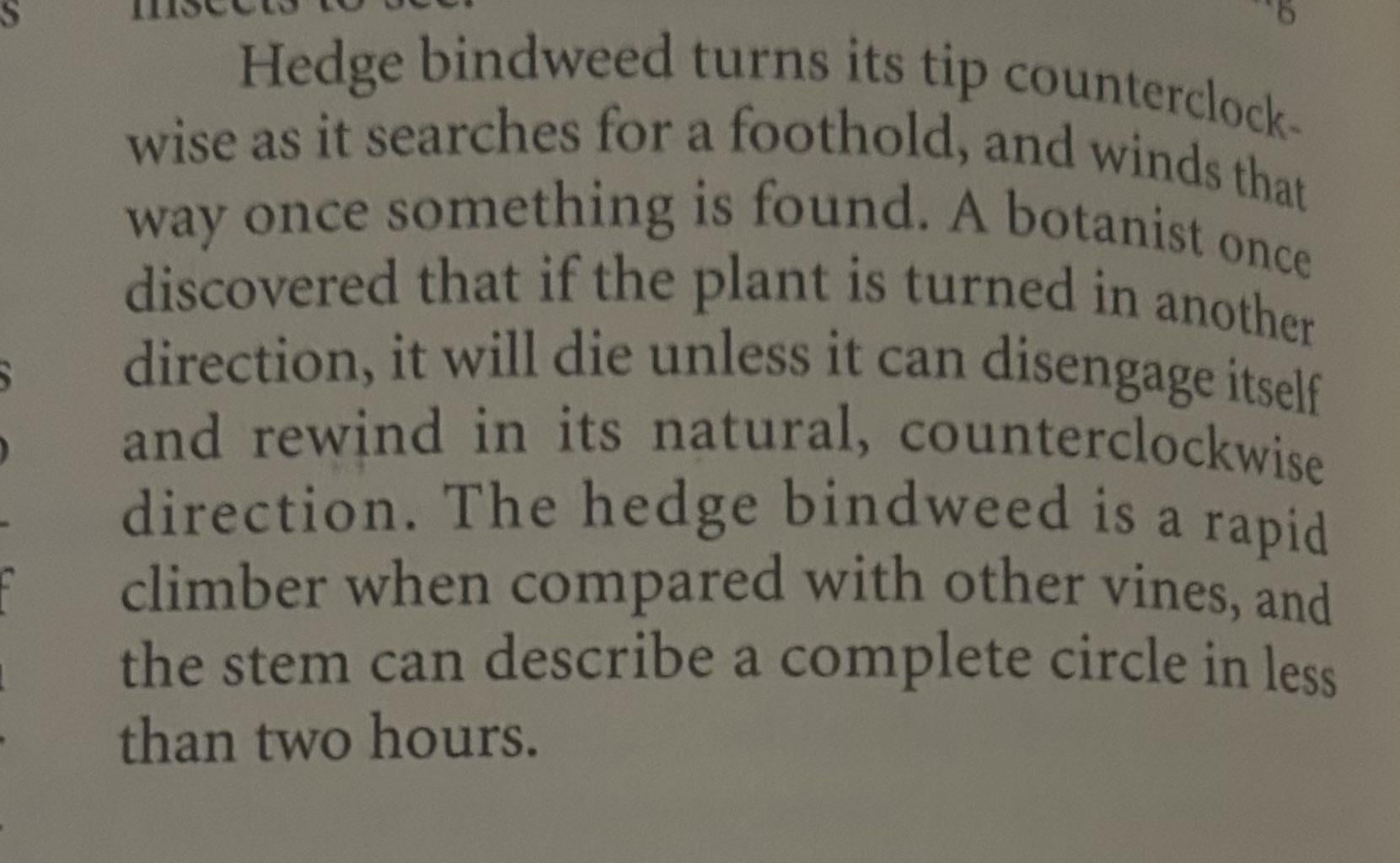 flindersrisk 4 months ago Supposedly, twining plants twine in the opposite direction on opposite sides of the equator. Don’t know whether that’s true either.