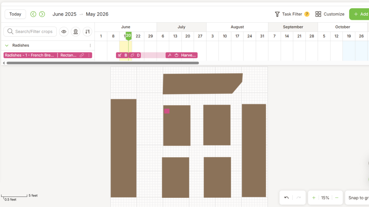You can quickly move things around and understand precisely how much room you have for additional crops, see what crops you still need to find room for, or check your progress at a glance as you’re planting. The layers tool will help you plan for succession planting and seasonal planting, too—you can see where you’d replace crops and designate when you’ll replace them, and with what.