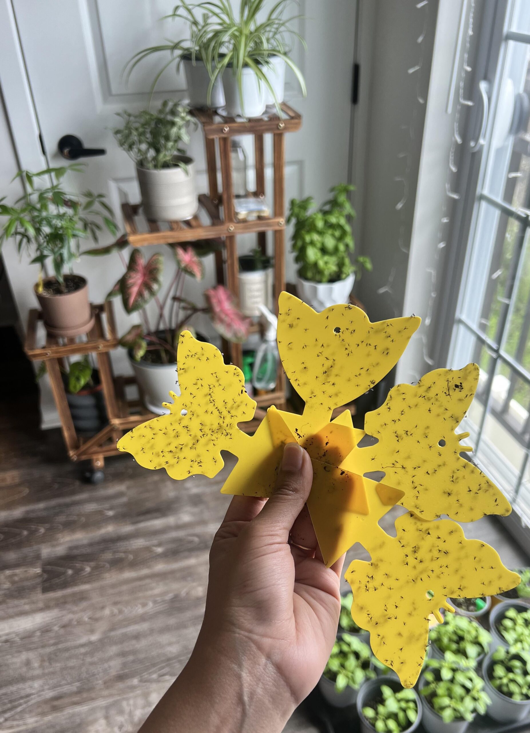 Diatomaceous earth. The sticky paper doesn’t do anything to control their reproduction—you have larvae in your soil and you need to commit gnat baby genocide. Sprinkle some DE on top layer of the soil and get ready to witness a literal miracle