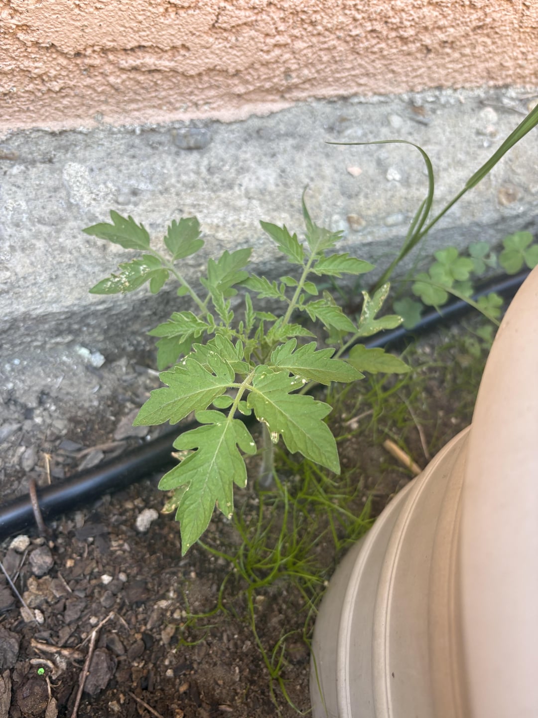 Hey, that weed behind the flower pot kind of looks like a tomato plant.