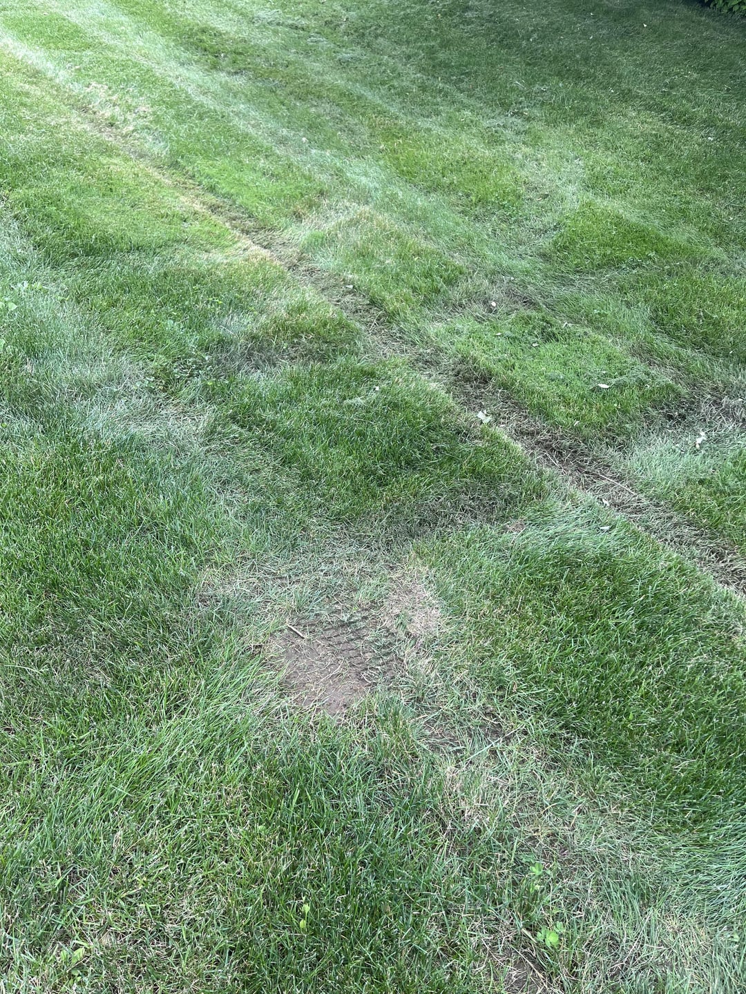 Yeah my neighbors yard always has spots like this. They have hired like 6 different companies in 5 years and they all tear the hell out of the turf by mowing wet.