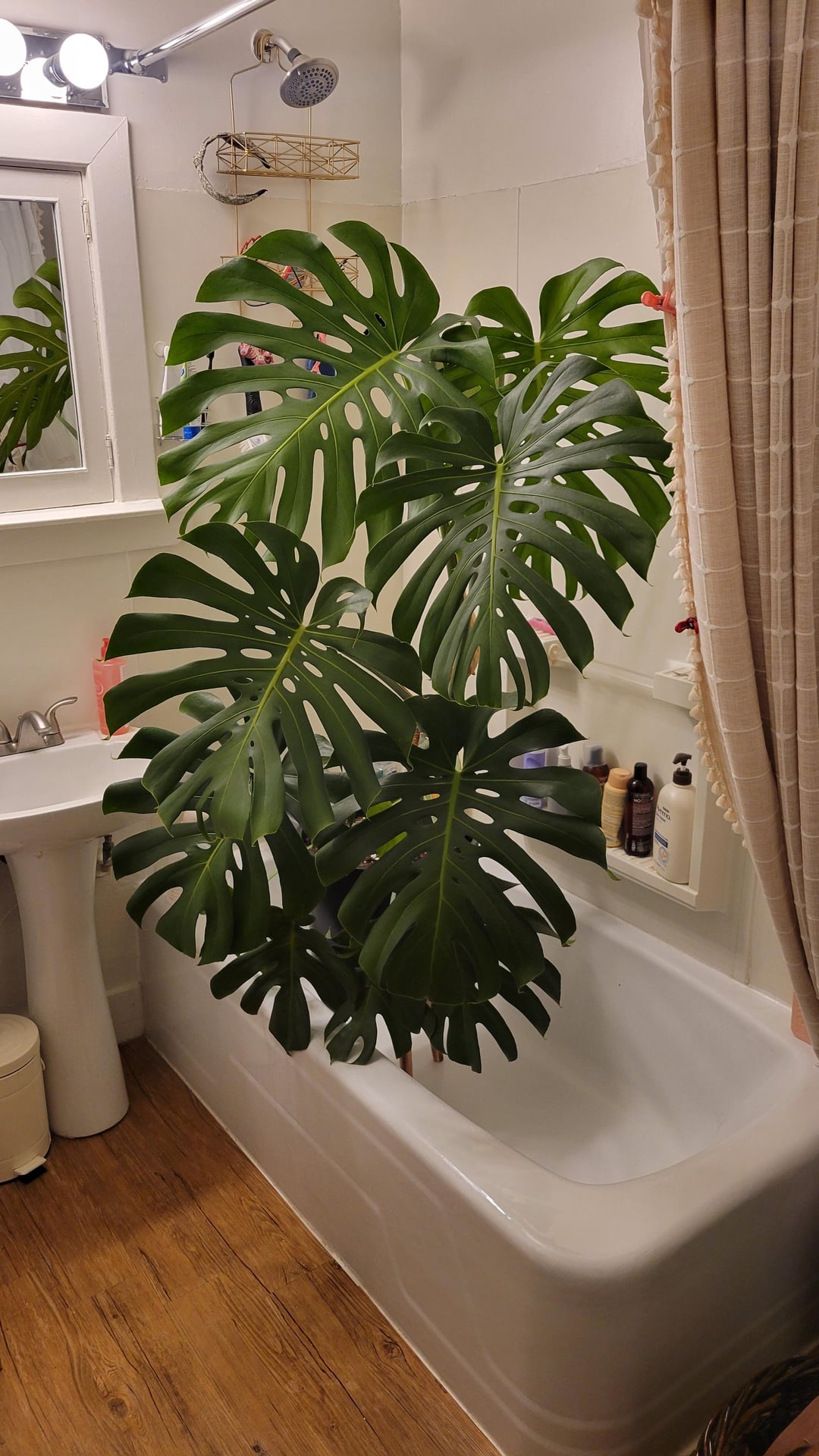 Almost exactly one year of growth. She rules this home by lilybattle houseplants 6 Comments ohnoihavenocoffee 4 months ago She’s beautiful!! Showing this to mine so hopefully she grows just as big and pretty! quarabs 4 months ago god how much light is she getting Dysfunction_Exec 4 months ago Wow, she’s a beaut! Axora 4 months ago Let’s see the back! I love looking how insane monsteras look from the back. The better the front the worse the back, I love it HumanNonHuman 4 months ago As she should 🤩 miniperle 4 months ago Was not prepared for the massive growth difference, wow Write A CommentYou must be logged in to post a comment.