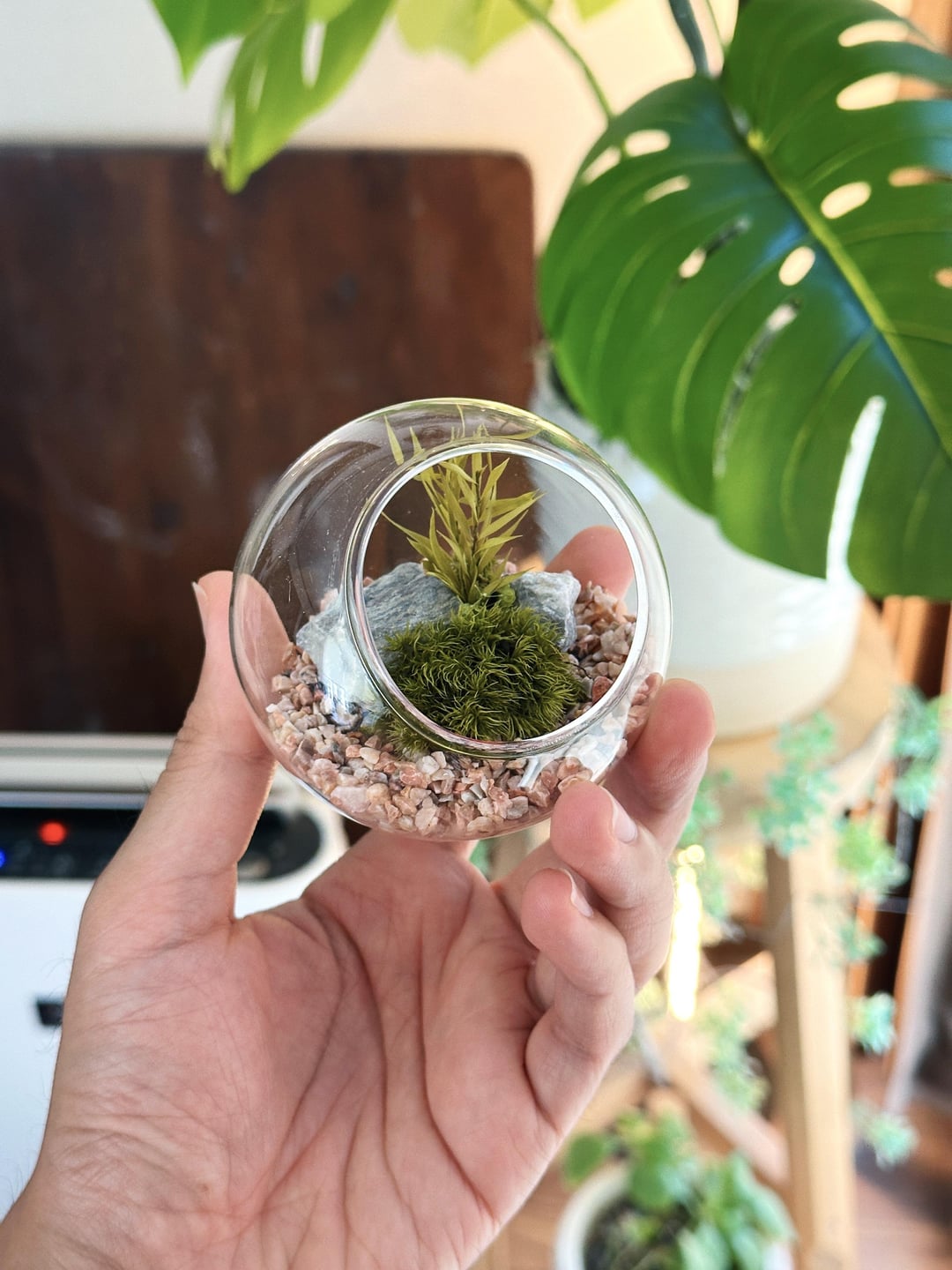 If you’re still unsure, gently touch the plants. If they feel soft, moist, or flexible like real foliage, then it might be a live moss or air plant.