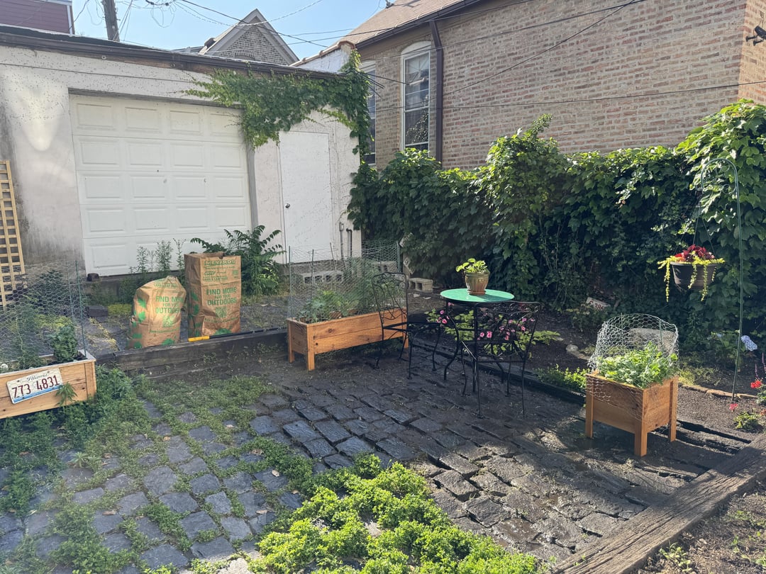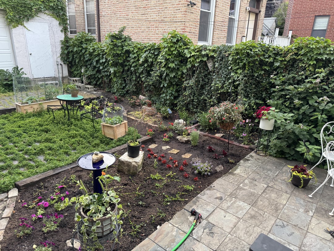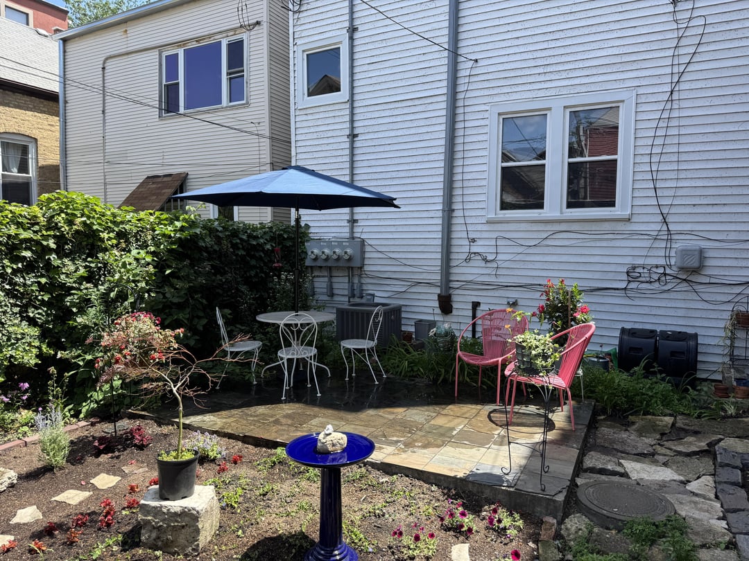 I acknowledge that the very back patio isn’t really much better, except for a couple plants. But in my opinion, this yard has too much paved area, and I wish this were grass or some other open space. The new tenants on the third floor expressed a desire to put a patio table in the very back, so I’ve decided to just leave this space for them.