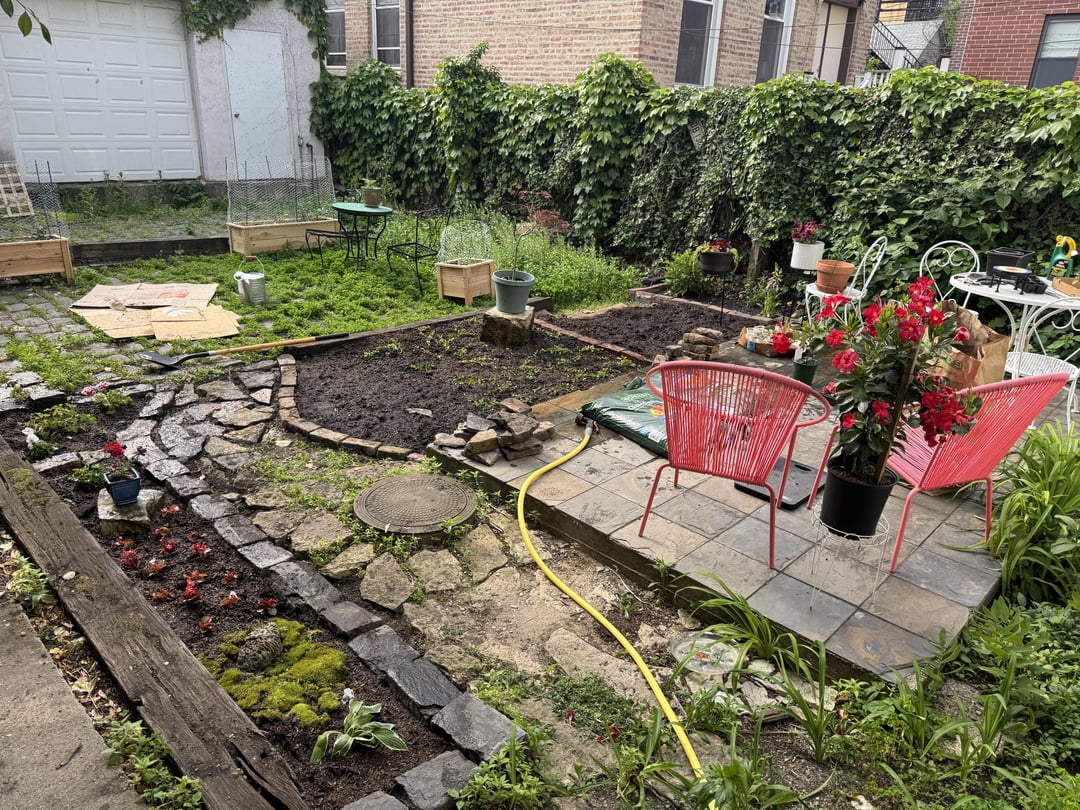 I posted a while back about what to do with the backyard in the house I rent. I took a bunch of your suggestions and I present to you roughly 6 weeks of hard work! (Chicago, US) — videos of before and after in comments
