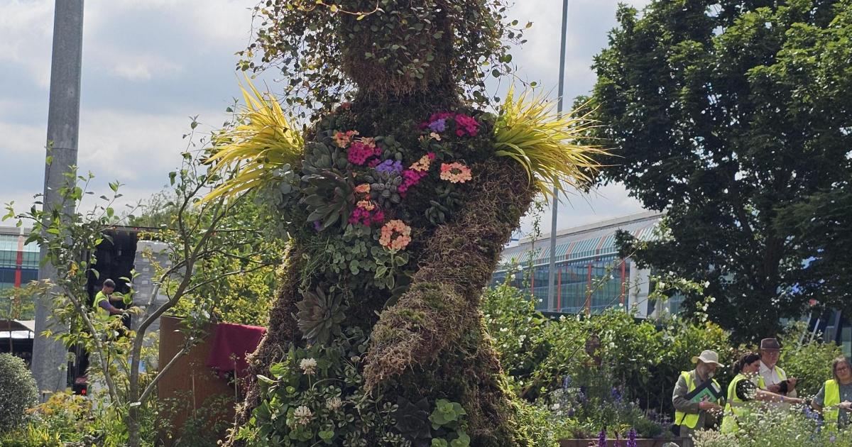 At its centre stood a striking Mother Nature sculpture made entirely from moss, foliage, and living plants.