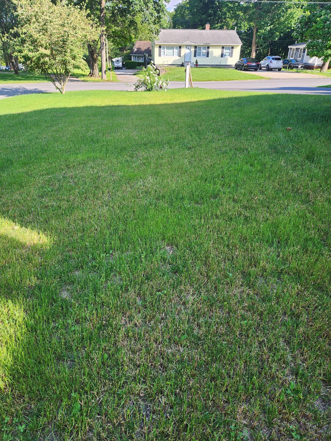 I'm not entirely sure what's going on here. Recently seeded last fall, watering every other day as weve had some killer rain lately. Plenty of sun, but random blades of dead grass appear to cause a browning on the lawn. Located in Massachusetts, I'm wondering if it's the seed, pH, lack of nutrients or something else.