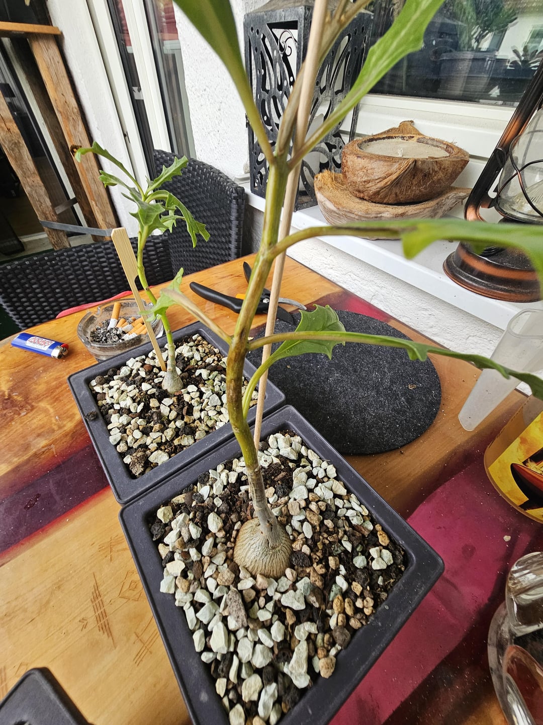 i sowed some Pterodiscus luridus seeds in January and one of my Pterodiscus luridus seems ill and got some wounds in his stem, but the stem is hard.. never seen that before.
