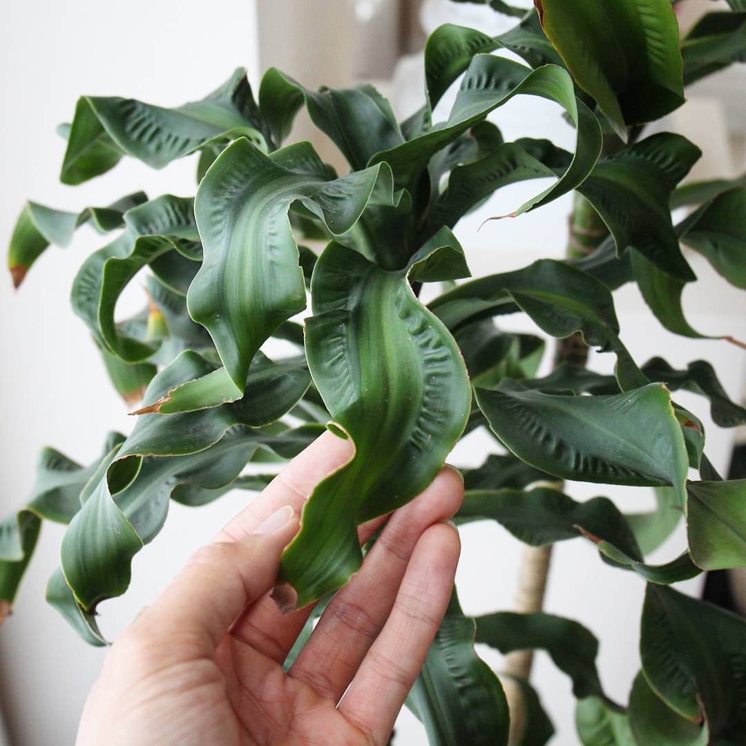 Found a good spot for my Dracaena Torch (not sure of botanical name) – look at that beautiful crinkled leaf structure. Seems to be rare – a gift from @sheridannurseries