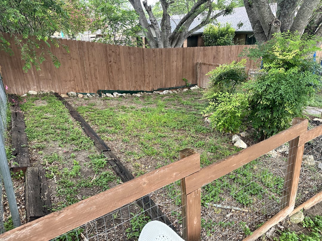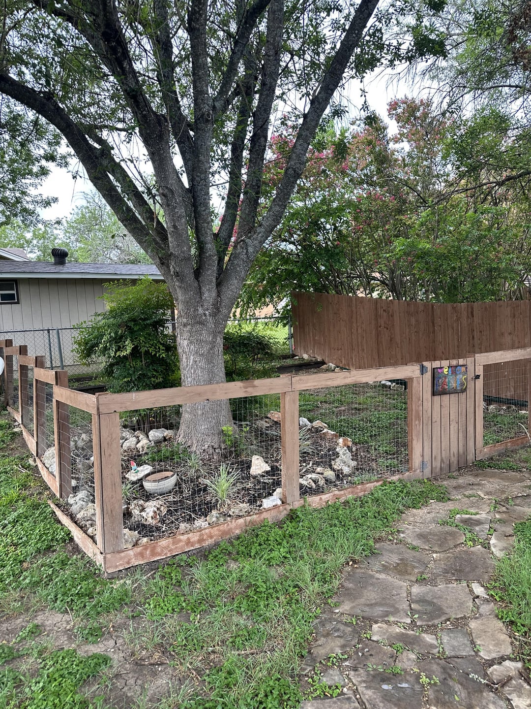 I have this area in my backyard that has a fence around (like that when we bought it years ago). I was thinking about a food forest, but it’s pretty shaded by this big oak.