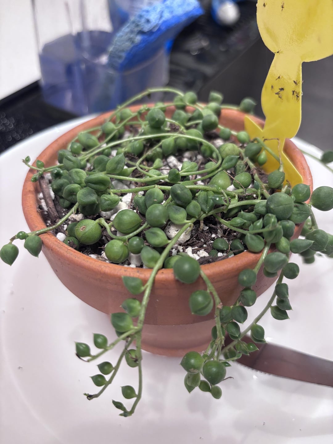 I bought this SOP about a month ago and when I repotted her apparently the soil I used had fungus gnats so I’m currently trying to get rid of them. However, since I’ve had this place the pearls are really shriveled, yet still green and the strings are popping out new pearls. What am I doing wrong and how can I best help this plant thrive?