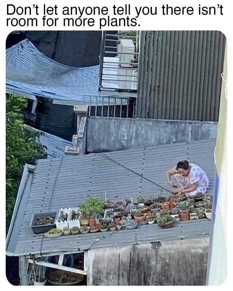 I love this so much. On the roof so what…that lady is making it work for her.